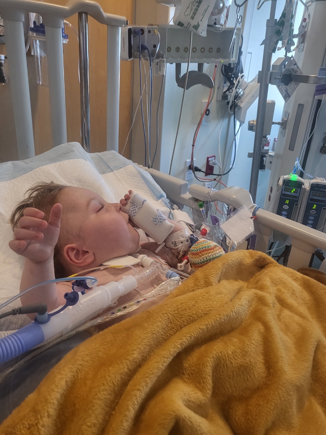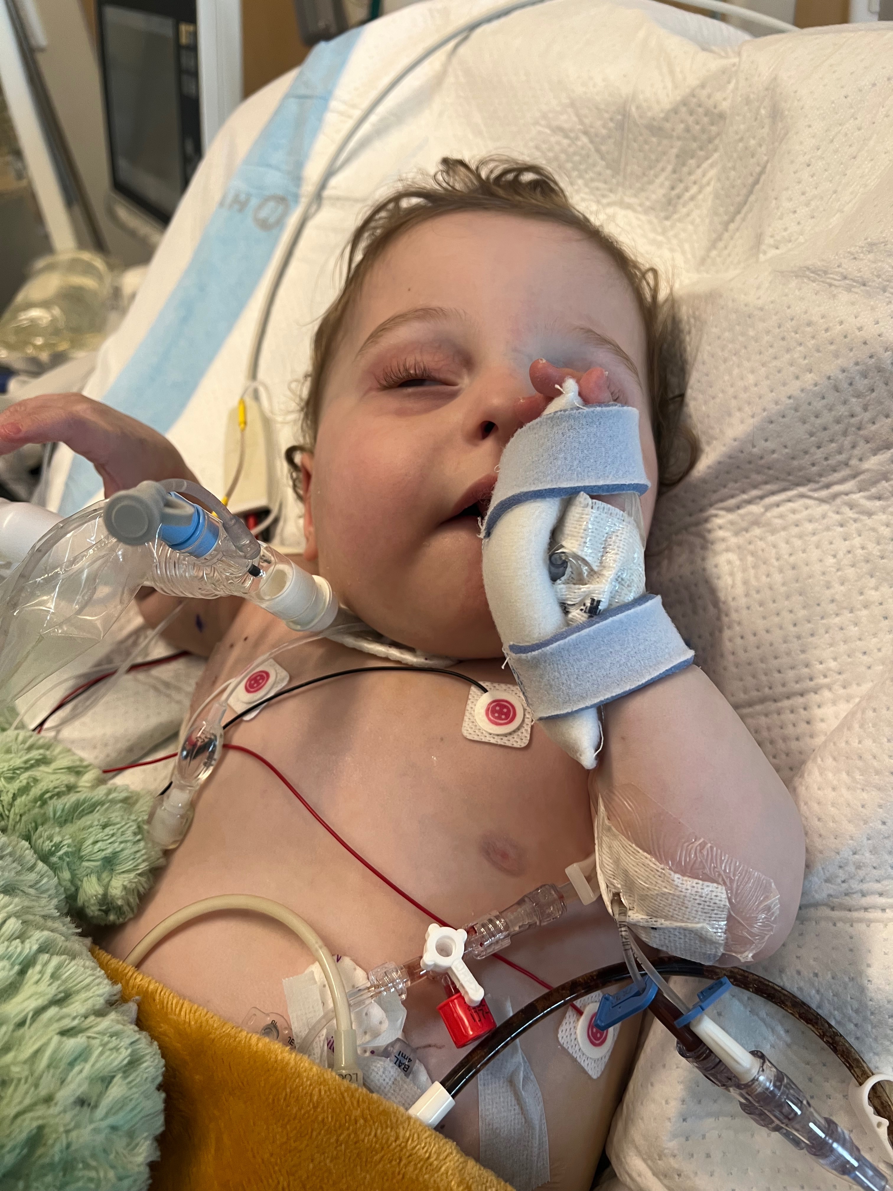 While it is cancer that is treatable, in Leo’s case, it is much more complicated. He is too small for a transplant and would not survive. He is too small for radiation, and the tumor is wrapped around 2 lobes of his liver right now and at the moment surgery is not an option. Since Leo had cardiac arrest, he has been on the hospital ventilator and his numbers are improving. If he continues to do well and they can get him back on his home vent and stays stable, the are going to try chemo in 3 separate rounds to try to reduce the size of the tumor so that they can then safely remove two lobes the tumor is on. Thankfully the tumor has not metastasized into other parts of his body. Chemo can make anyone sick no matter what age and can definitely cause pneumonia and respiratory issues as well as other bad side effects along with weakening his immune system, which is already compromised… We are asking for continued prayers for our sweet Leo and that he will make it through his chemo treatments needed to reduce the tumor