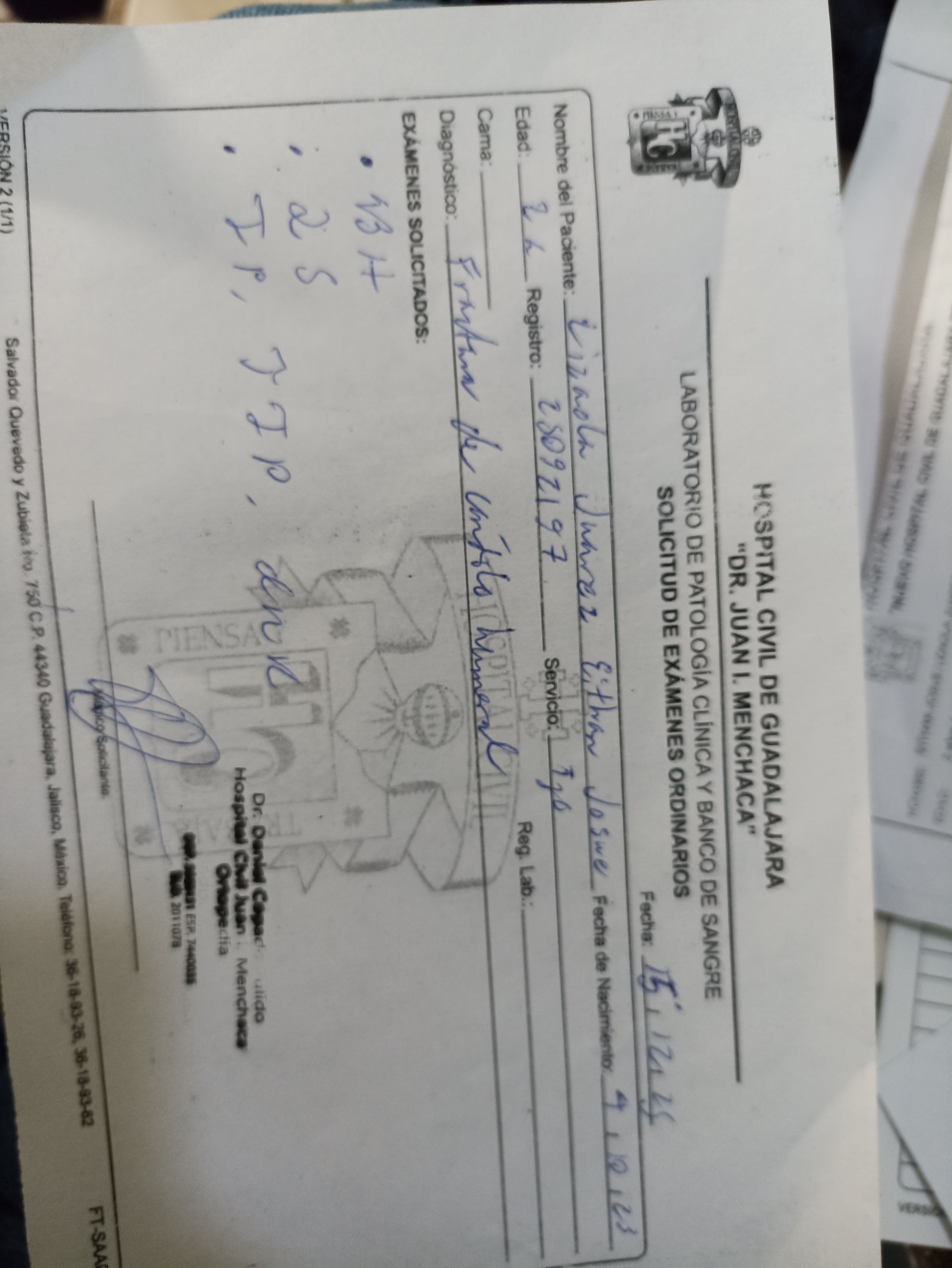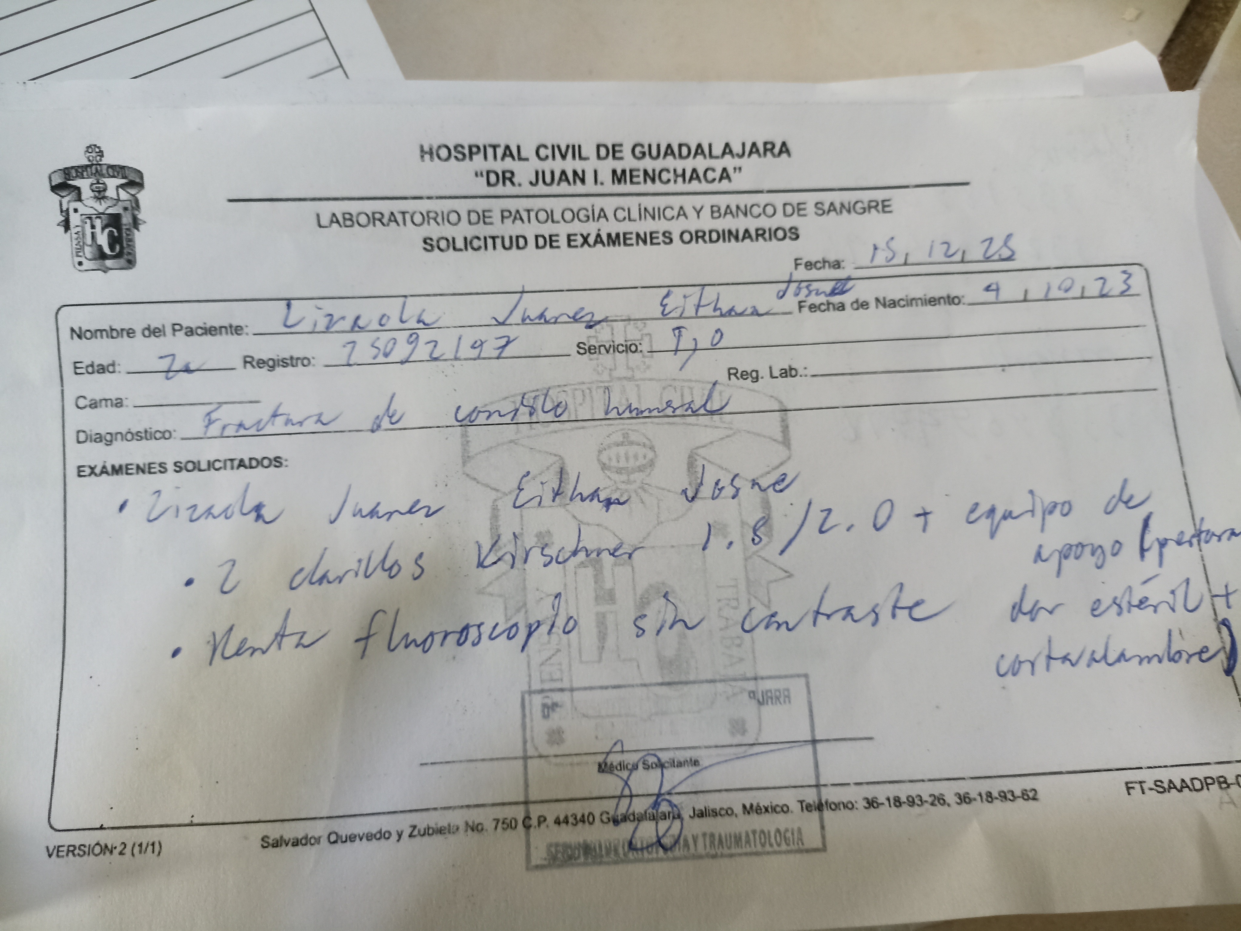 * Material quirúrgico (incluyendo los dos clavos).