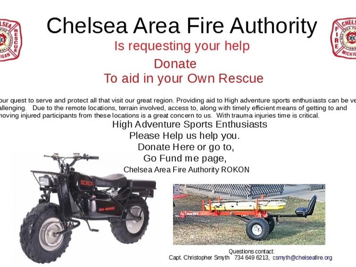 The Chelsea Area Fire Authority Rokon project will greatly benefit all of the outdoor enthusiasts that use the greater Chelsea/Waterloo/Pinkney recreation areas. Hikers, hunters, cyclists, mountain bikers, cross country skiers, snowmobilers, horse riding enthusiasts.