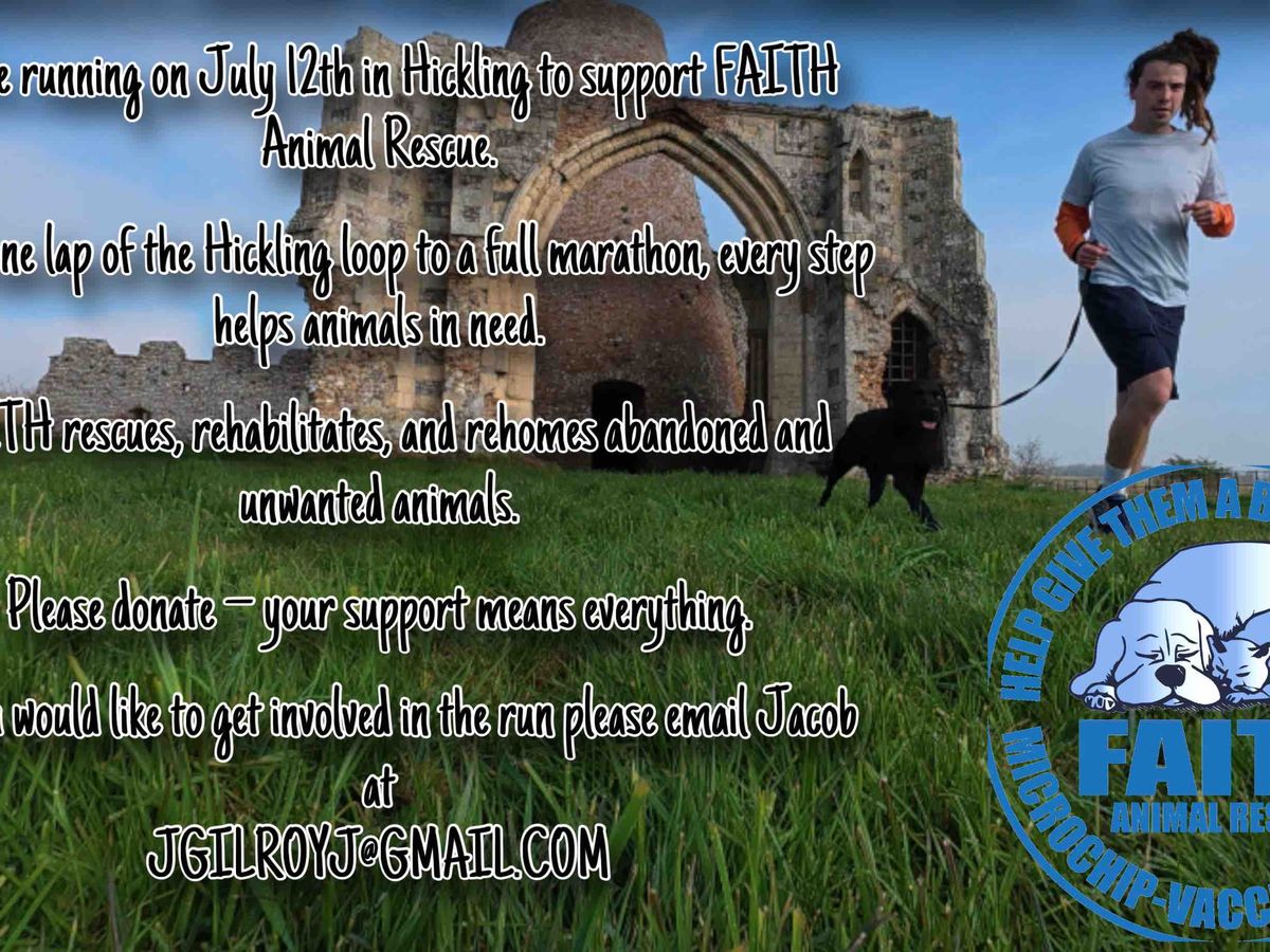 On July 12th, a community run will take place in Hickling, and we’re coming together to raise money for FAITH Animal Rescue – a brilliant local charity doing vital work for abandoned and unwanted animals.