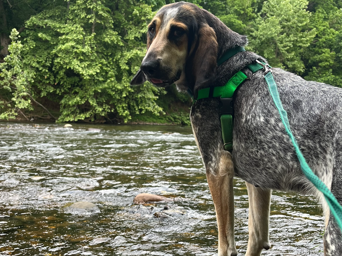 My name is Lindsey and me and my partner Eric tragically lost our sweet best friend Lou on January 22, 2025. Lou, a beautiful hound dog that showed up as a stray, nestled her way into our hearts. When Lou arrived into our lives she had lyme disease, worms, was not spayed, and was malnourished and under weight. It was a long journey to get her healthy and find food that worked with her sensitive stomach. Lou went on many adventures and she helped us to meet all of our neighbors and neighborhood dogs. She had a way of bringing people together and putting smiles on everyone's faces. She was always happy, always smelling everything, always hungry, and wanted pets from everyone. She loved being outside, resting in the sun. She learned that toys were fun, especially if they squeaked, and were even better with peanut butter smeared on them. She learned the art of walking with a harness and leash, and that this meant we were going on a walking adventure. She learned commands because commands always meant treats. She was the most beautiful sweet girl sitting, smiling, drooling, patiently waiting for, "ok come here." She loved sitting in front of the wood burning stove and sleeping all day snug as bug on her bed with her blankets. She hated baths but loved belly rubs. What we miss the most is having her so excited to see us and running around with her goofy big paws and big floppy ears. Lou, the sweetest girl in the world, learned that the world isn't always bad, and that sometimes you must wander until you find the place that is home. She found home with us, tucked away on a dirt road amongst the trees. She settled her soul here and the settling gave rise to a deep mutual love. She taught us what love really is and that love doesn't need words to be known. That love enters into places that no words can reach and it’s a feeling of ethereal grace. Eric and I learned a new kind of love and Lou warmed our hearts.