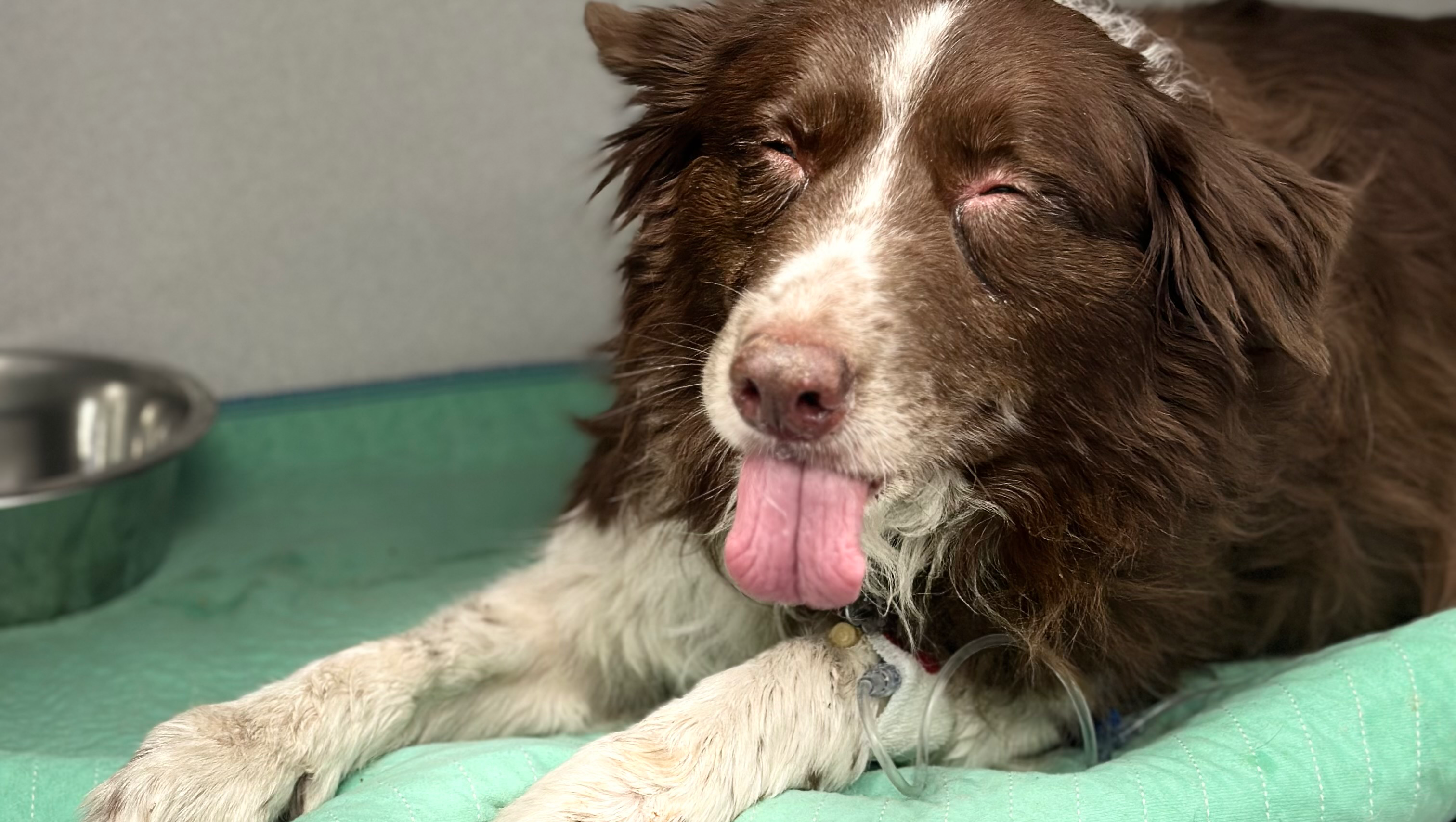 April 3rd, 2025, my grandparents' basement caught fire, causing the fire to spread upstairs. While everyone was okay, they did lose a couple of kitties. While in the process of trying to get all of the animals out, Sadie would not come out. She's a rescue dog that went through a lot in the past, so the stress from everything made her go to her safe space. Unfortunately, she was left in the house for about 45 mins inhaling all the smoke. Firefighters were able to get her out; she was very unresponsive, but medics were able to give her oxygen, and she showed some life. She is now at the emergency vet hospital with a long road to recovery as she is still needing oxygen due to her lungs being in rough shape from the smoke.