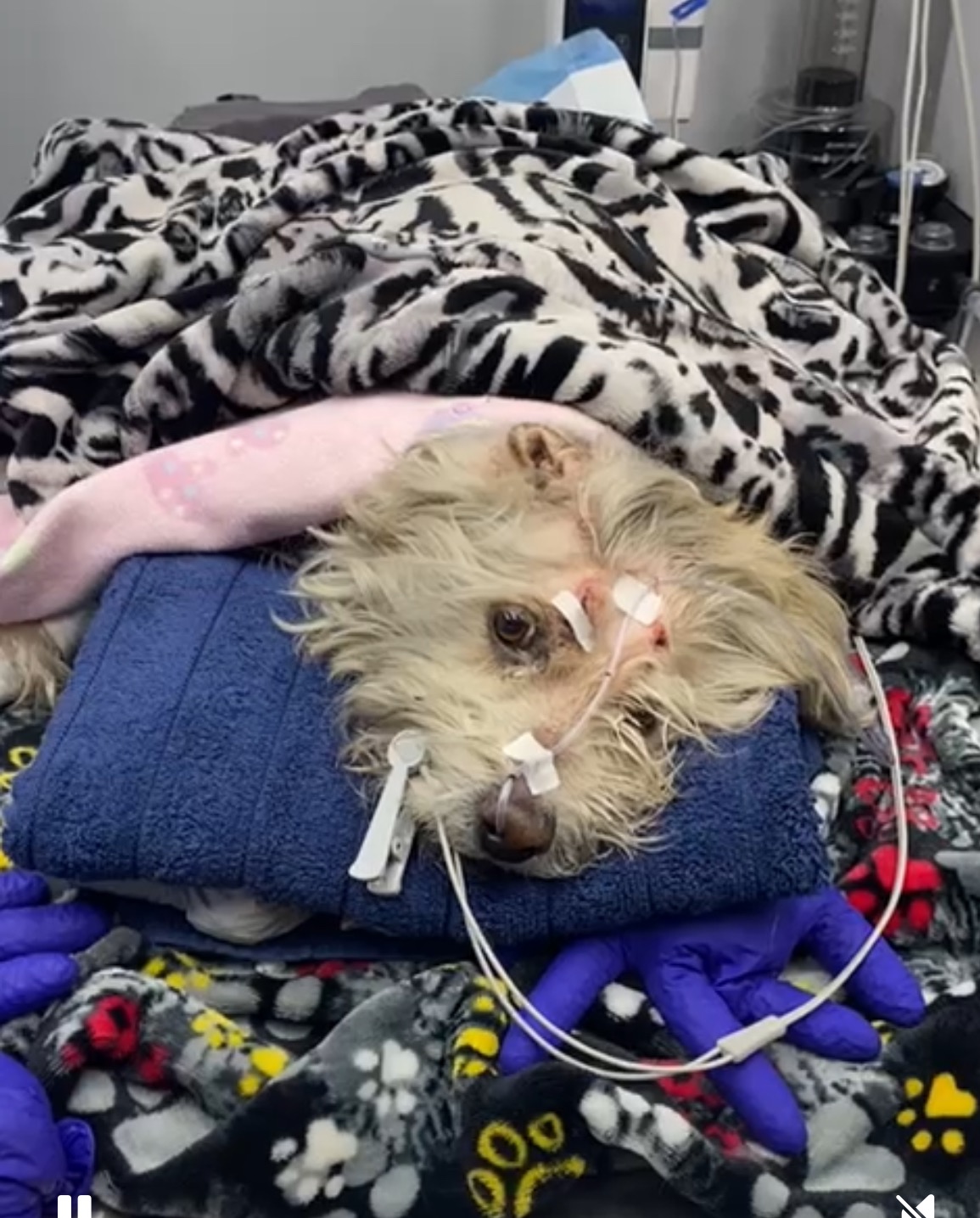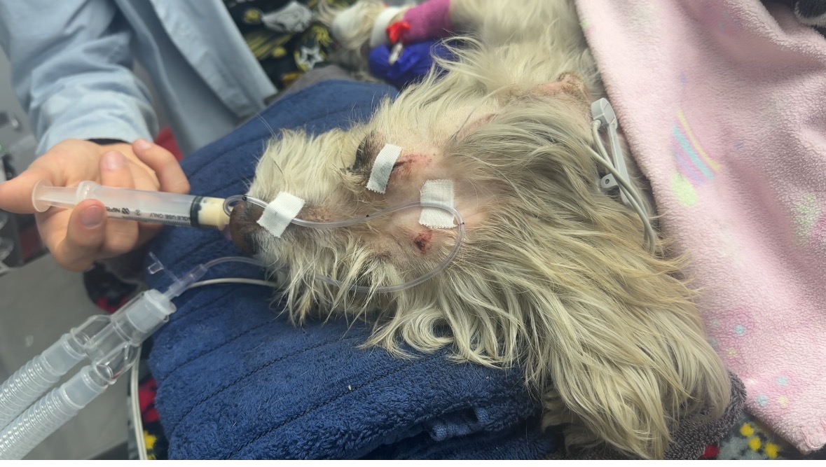 El día de ayer, diciembre 17, iba cruzando la calle cuando una camioneta me arrolló. Una familia me recogió y me llevó al veterinario, donde vieron que tengo un pulmón colapsado, mi corazoncito necesita drenaje y mi cadera fracturada.