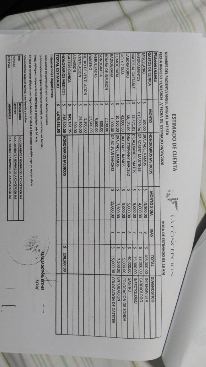 Hasta el momento, los gastos médicos han alcanzado la alarmante suma de 2,450,000 pesos dominicanos, una cantidad imposible de sostener sin ayuda. Y los costos continúan aumentando con cada día que permanece en cuidados intensivos.