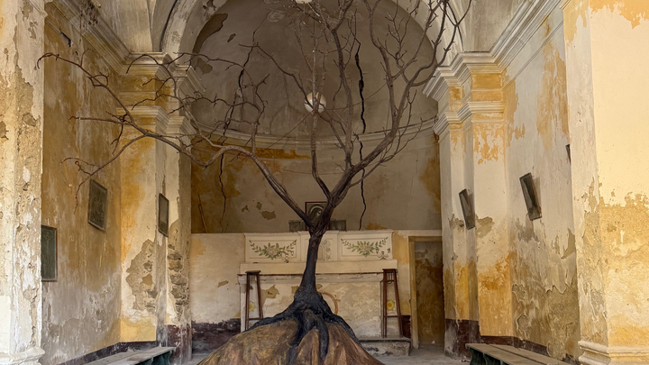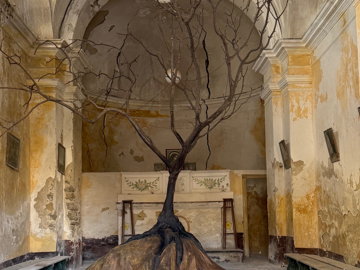 Durante la raccolta fondi la Chiesa dell’Addolorata resterà visibile dall’esterno e si potrà ammirare al suo interno una pregevole installazione di Salvatore Pio Anton Longo e Giuseppe Spitaleri che hanno sposato il progetto di recupero. L’opera dal titolo Essenza Radicata è una grande composizione con al centro un maestoso albero, i cui rami intricati e contorti sembrano abbracciare l'infinito, proiettandosi verso un cielo carico di speranze e memorie. I rami, come braccia tese verso il futuro, esprimono la forza di una vita che, pur affrontando le sfide del tempo, non smette mai di cercare la luce.