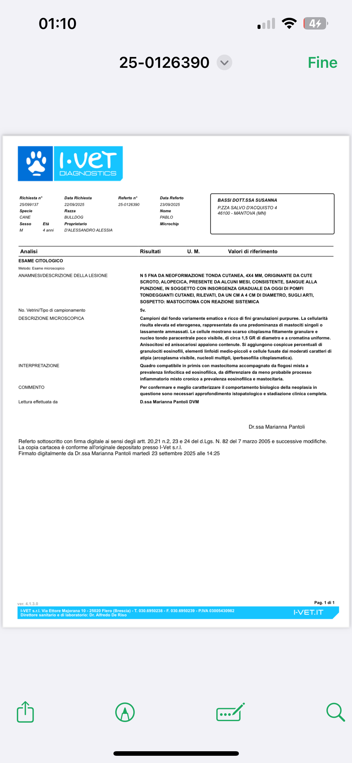 1. Linfangio Tac (necessaria prima dell'intervento) €550 presso la struttura GardaVet di Desenzano del Garda.