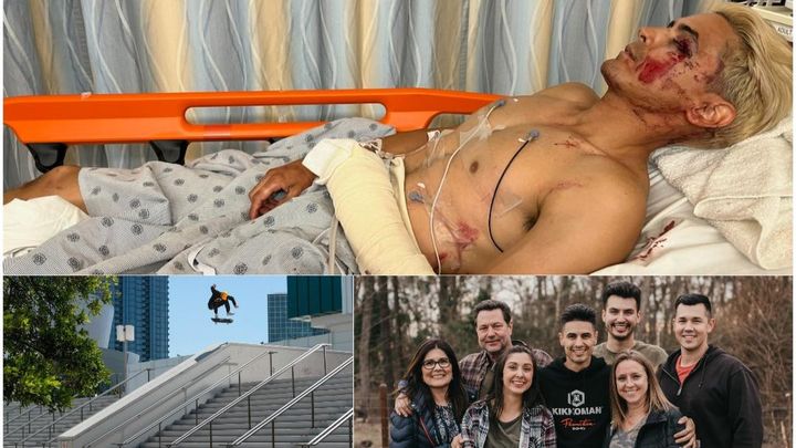 While cameras were rolling he knew that he wasn’t going to land the trick so he tried to step off the board before falling off a stair ledge. He ended up falling off the stair ledge landing on the left side of his body on concrete, face first resulting in a concussion, facial injuries, broken wrist, ribs and multiple pelvic fractures.