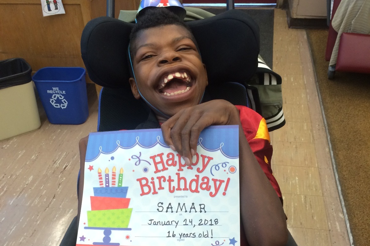 Samar Hurt Jordan passed away peacefully on July 17 at 730 PM. His father was at his bedside. Samar faced many challenges during the 16 years of his life. His mother passed away from breast cancer when he was only 3 years old. As an infant Samar had tremors and his father noticed they were becoming worse so he took him for further evaluations. He was diagnosed with Congenital Cerebellar Ataxia. Samar fought all the challenges of this condition with big smile on his face. It was very rare that he would show any pain or unhappiness. Samar was able to walk when he was younger, but needed a walker and then finally a wheelchair to get around. He loved going to Hope School and was rarely absent. He had a big appetite and loved pizza and spaghetti. Samar was not able to chew well this last year and required a tube for feeding. He could handle pureed foods in small amounts, so his father would blend pizza and hamburgers in the blender so he could have his favorite foods. Samar had a severe curve in his back and his hands were bent and frozen in place due to lack of movement, but he was still able to use his iPad to watch his favorite show, Thomas the Train, or to play his favorite games.Samar taught us all how to be grateful for all we have in life. And to keep on smiling. He will be missed terribly.
