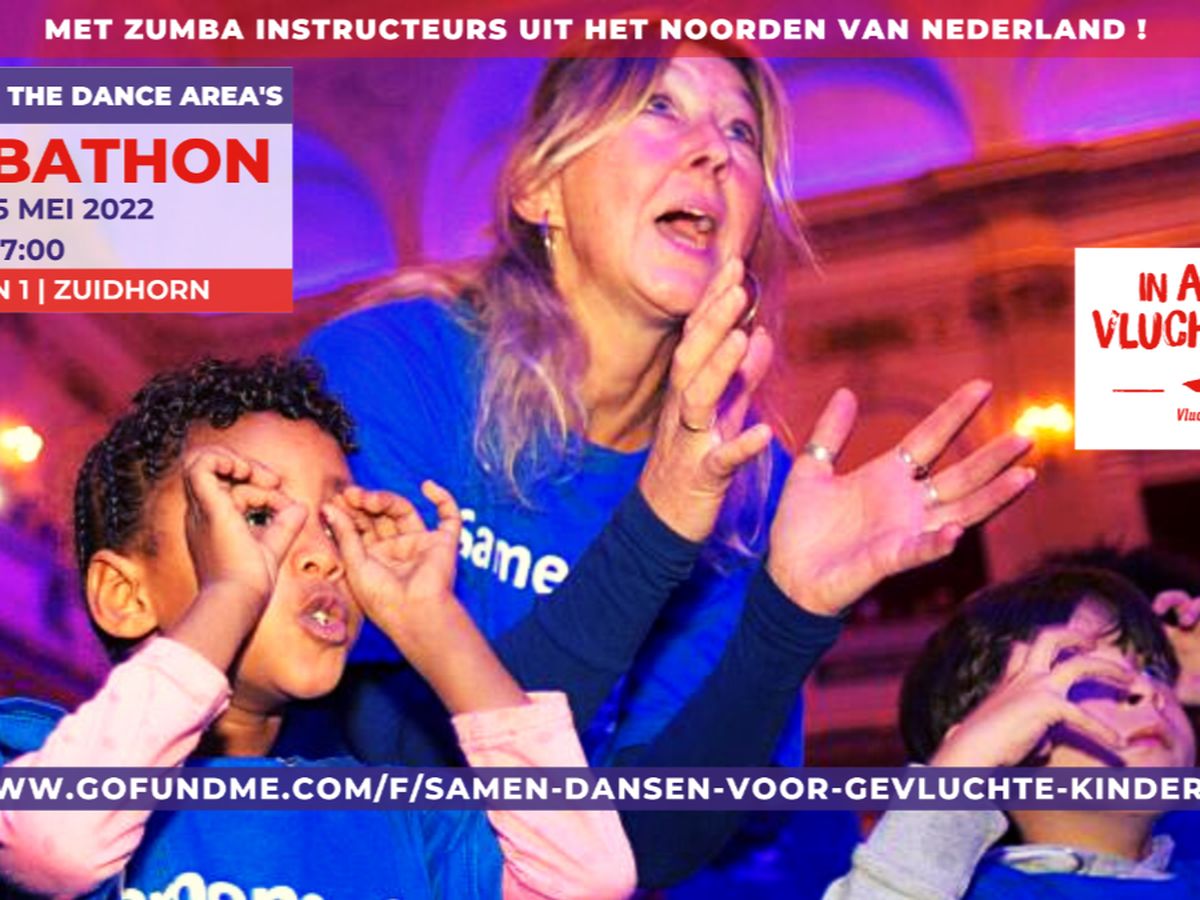 Vanuit ons vakgebied weten we hoe waardevol het is om je emoties en gedachten middels sport, muziek en dans een plek te kunnen geven. Wij staan niet in de overleefstand maar vluchtelingkinderen wel. Daarom organiseren wij een 4-urige Zumbathon op zondagmiddag 15 mei 2022 en zullen we samen met vele dansliefhebbers voor hen dansen. In die 4 uur tijd bieden we 8 dansblokken aan waarin Zumba Instructeurs uit het Noorden van Nederland hun liefde voor dans en muziek op een professioneel aangekleed podium zullen delen. Iedereen die van dans en / of specifiek van Zumba houdt, is welkom. Het is mogelijk om een gedeelte van de Zumbathon mee te dansen - indien je niet volledig mag of kan deelnemen.
