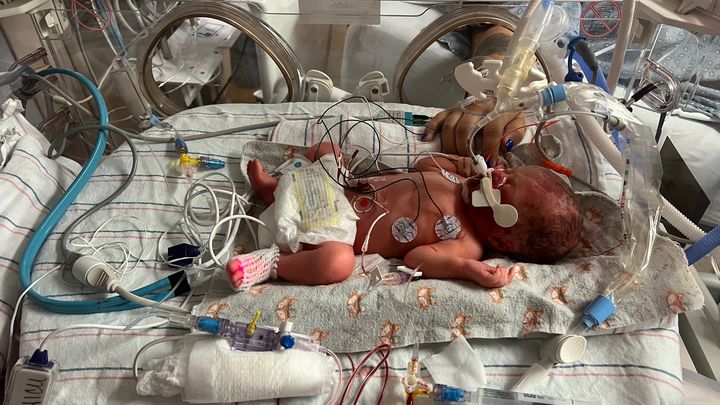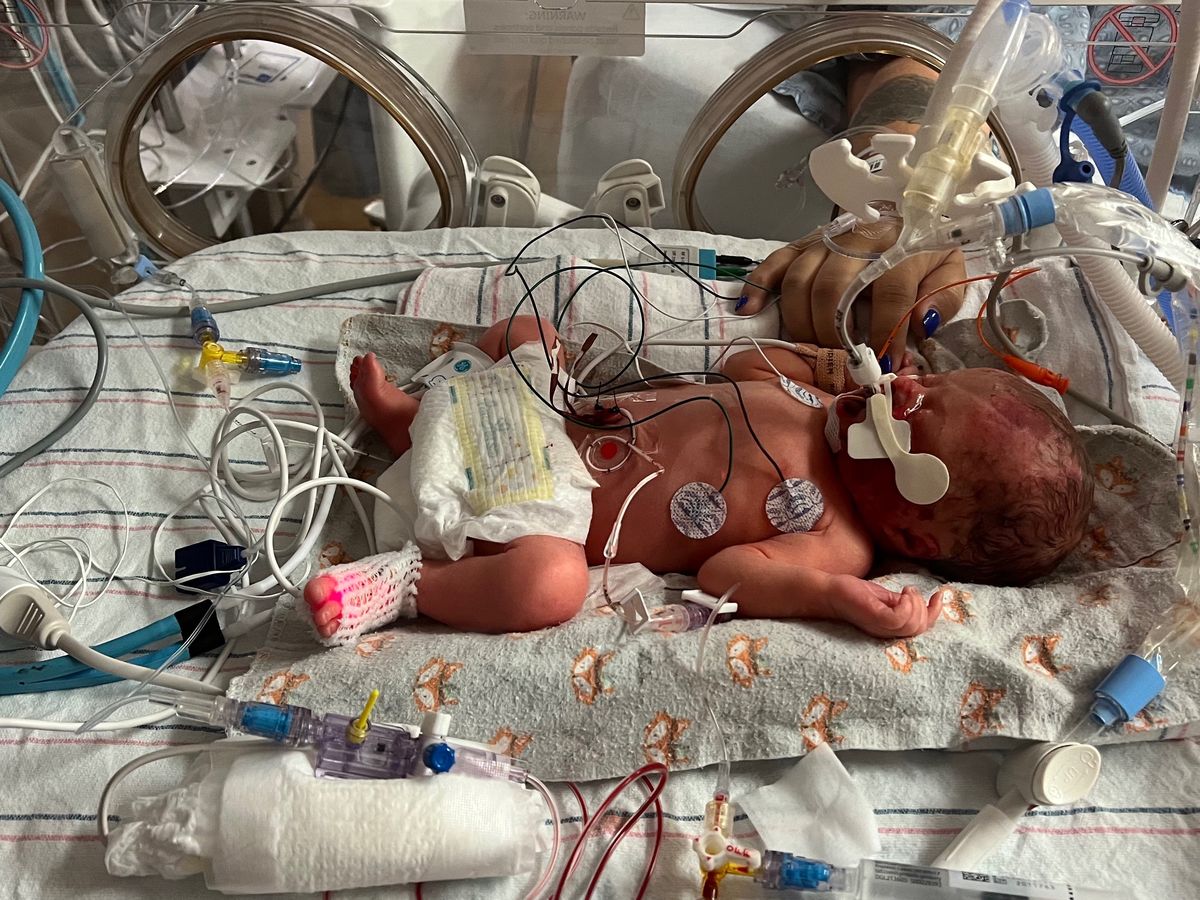 This is Sammi and Brandon’s little girl Teagan. She stopped moving in her mother’s belly. The doctors took Teagan out at thirty weeks. She still didn’t move. She is on a breathing machine in the NICU. Her mom and dad both have full time jobs and Sammi is in college full time. The stay in the NICU is going to be around 2 months. Brandon and Sammi live almost an hour away and are very dedicated parents. They will make the trip, one hour each way, every day after Sammi is discharged.  They really could use some help with travel money. Gas is insane!  Please consider donating to assist with gas and meals. Thank you