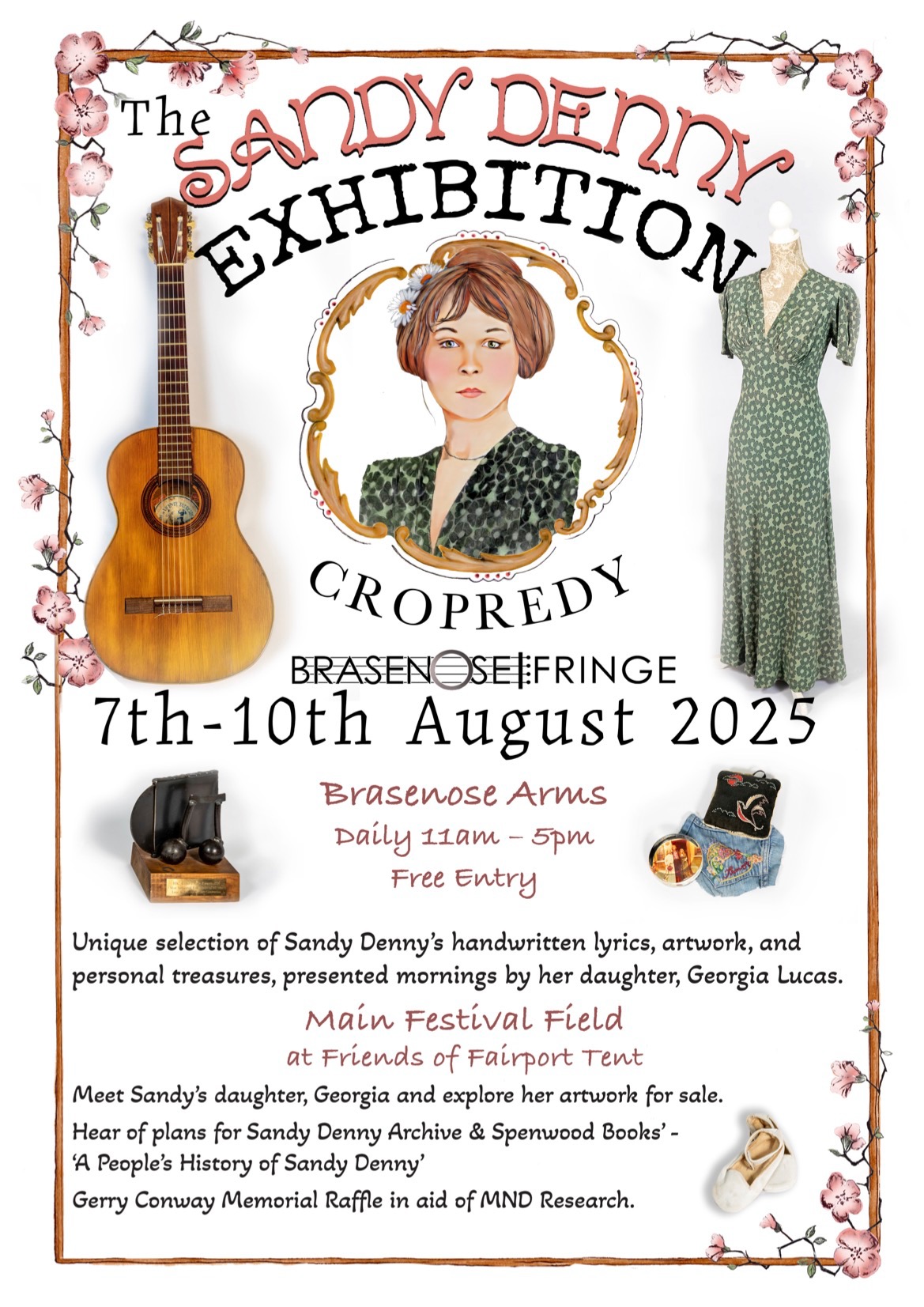 In 2023 I realised a long held ambition: bringing a unique exhibition to Cropredy's Brasenose Arms for Fairport's annual festival. For the first time, fans old and new had an intimate glimpse into my mum’s world through her handwritten lyrics, guitars, photographs, stage outfits, and other personal treasures. The responses and emotions it evoked were overwhelming – inspiring me to return this August with an expanded exhibition — delving deeper into her life and music.