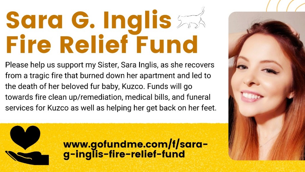Thankfully, no one else in the building was hurt, but her darling cat - Kuzco - passed away from smoke inhalation. He was her constant companion, and we are heartbroken from his loss.