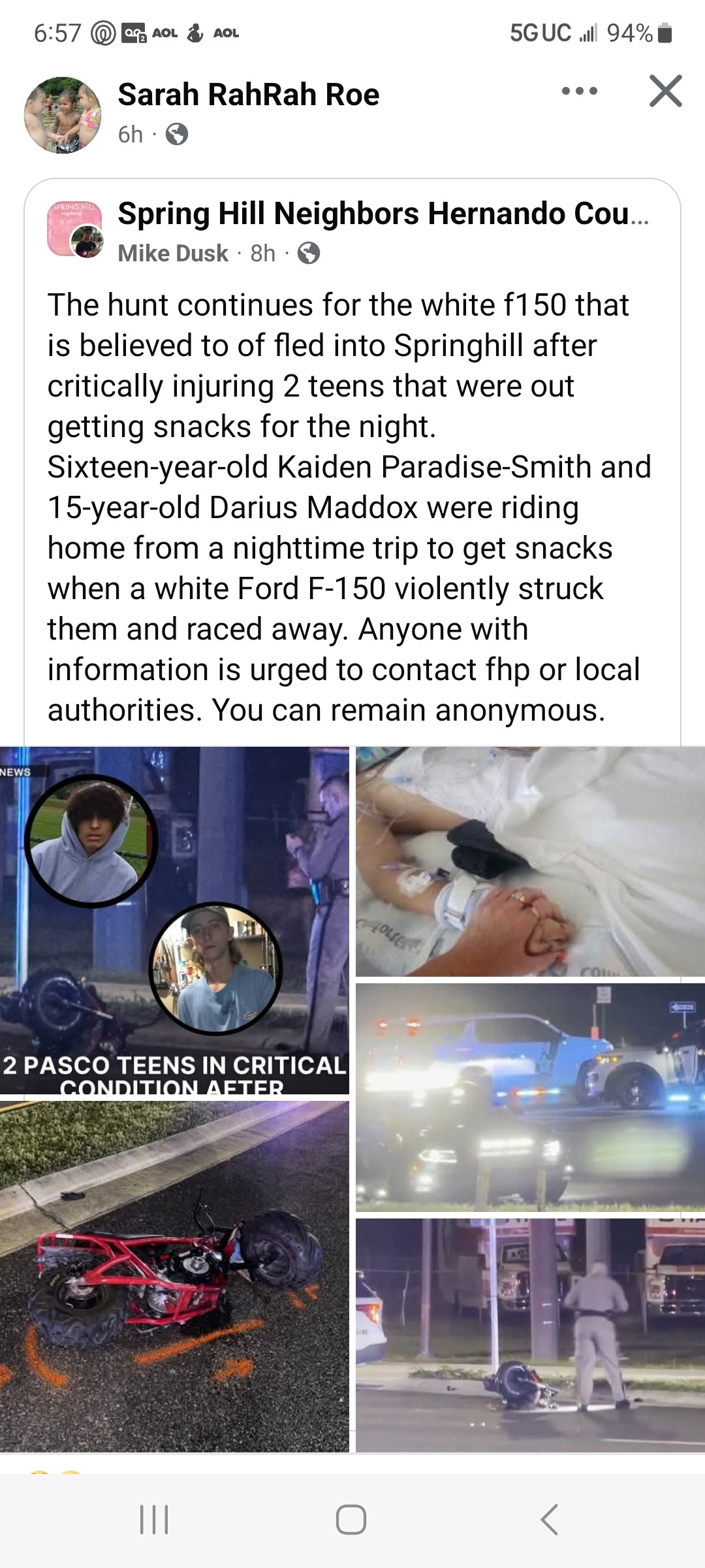 I'm writing this on behalf of my friend Sarah Roe, who is currently sitting with her son, who is in a coma due to a hit-and-run incident. At this time, her 15-year-old son, Darius Maddox, is fighting for his life due to the negligence of a driver who hit Darius and his friend while they were crossing a road to get some snacks from a store and took off with no regard for the two young boys he left lying in the street.