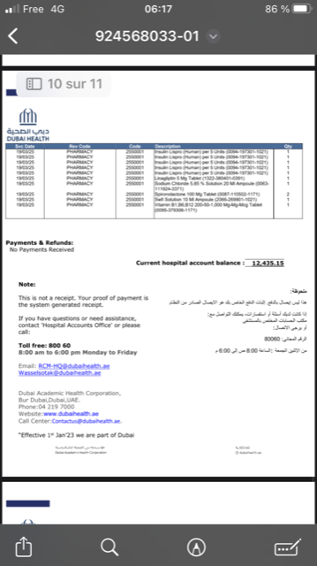 ✔ 12 000 AED (~3 300 USD) pour l’hôpital (encore impayés)