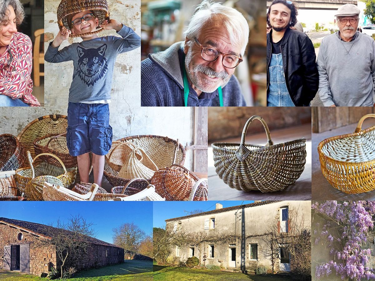 Nous sommes à la Crépelière, un hameau Vendéen. Ce lieu est la base, la racine, le pivot de ma famille. C'est le berceau de la „Vannerie Nauleau“, le berceau de mon enfance. Mon père est né dans cette maison et y vit encore. Mes grands-parents y étaient paysans. L'hiver Papi Valentin y tresssait déjà tressait des paniers. Aujourd'hui, chaque année, j'y passe du temps avec Papa. J'absorbe son expérience de vannier, d'ébéniste, de jardinier, de bricoleur. Il a toujours tant à m'apprendre.