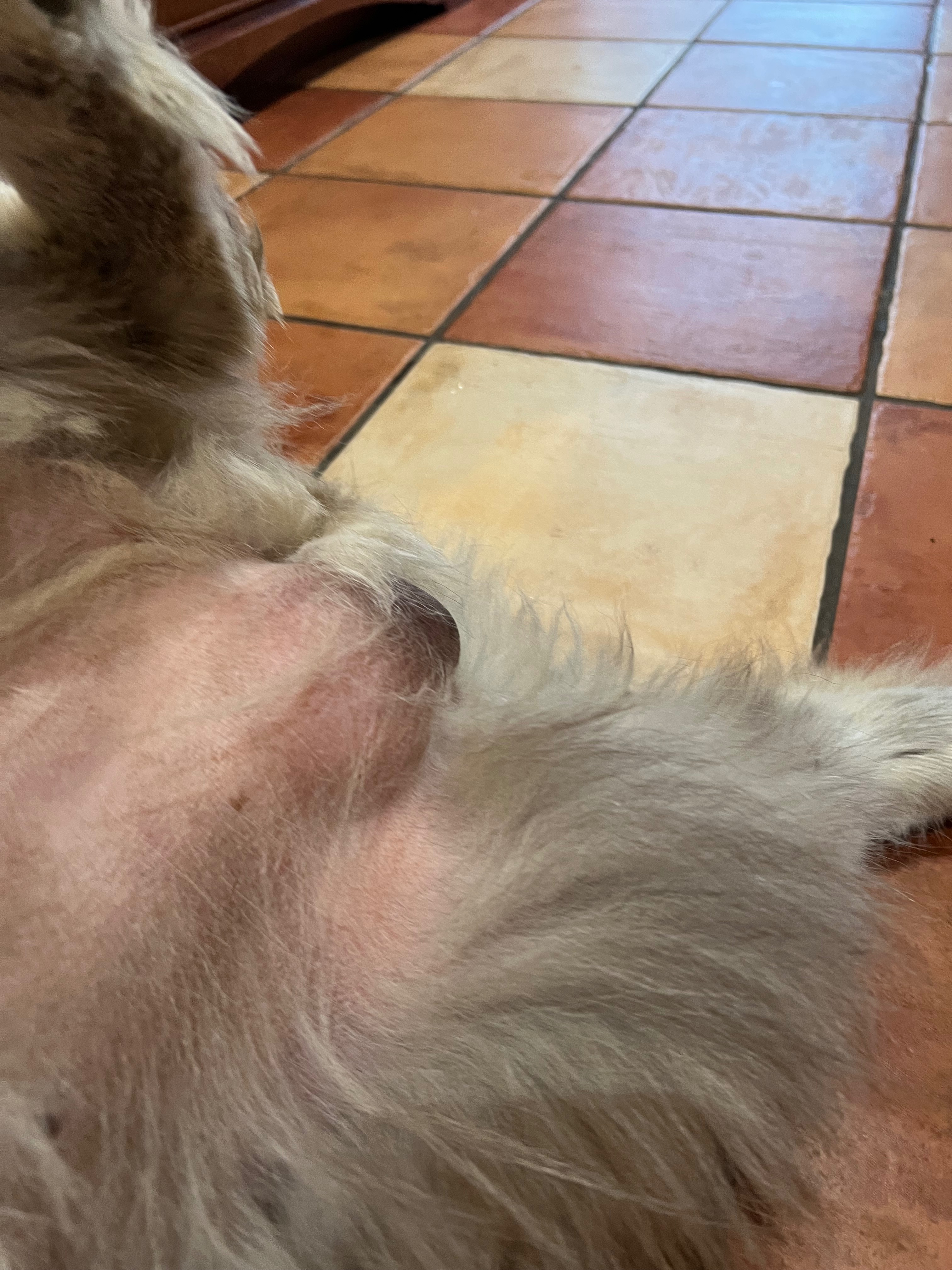 Récemment, nous avons remarqué une grosse masse près de sa laine et cela me fait peur et m'angoisse énormément. Nous avons déjà consulté notre vétérinaire, qui a confirmé qu'il est nécessaire d'aller voir un chirurgien spécialisé en raison de la complexité de la zone touchée. Ça peut potentiellement être de type Fibroadénome ou autre chose, mais ce qui est sûr, c'est que cette opération requiert des examens approfondis (radiographies, échographies, prises de sang, etc.) avant même de pouvoir procéder.