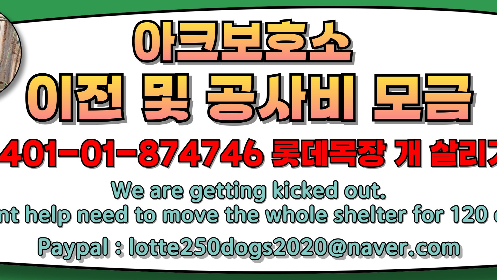 We are KoreanDogs.org, and 100% of the funds raised here will be donated to the Animal Rights Korea (ARK) Shelter in South Korea. ARK urgently needs to relocate to a new facility, and your contributions will help cover the lease and construction costs for their new shelter to house rescued dogs.