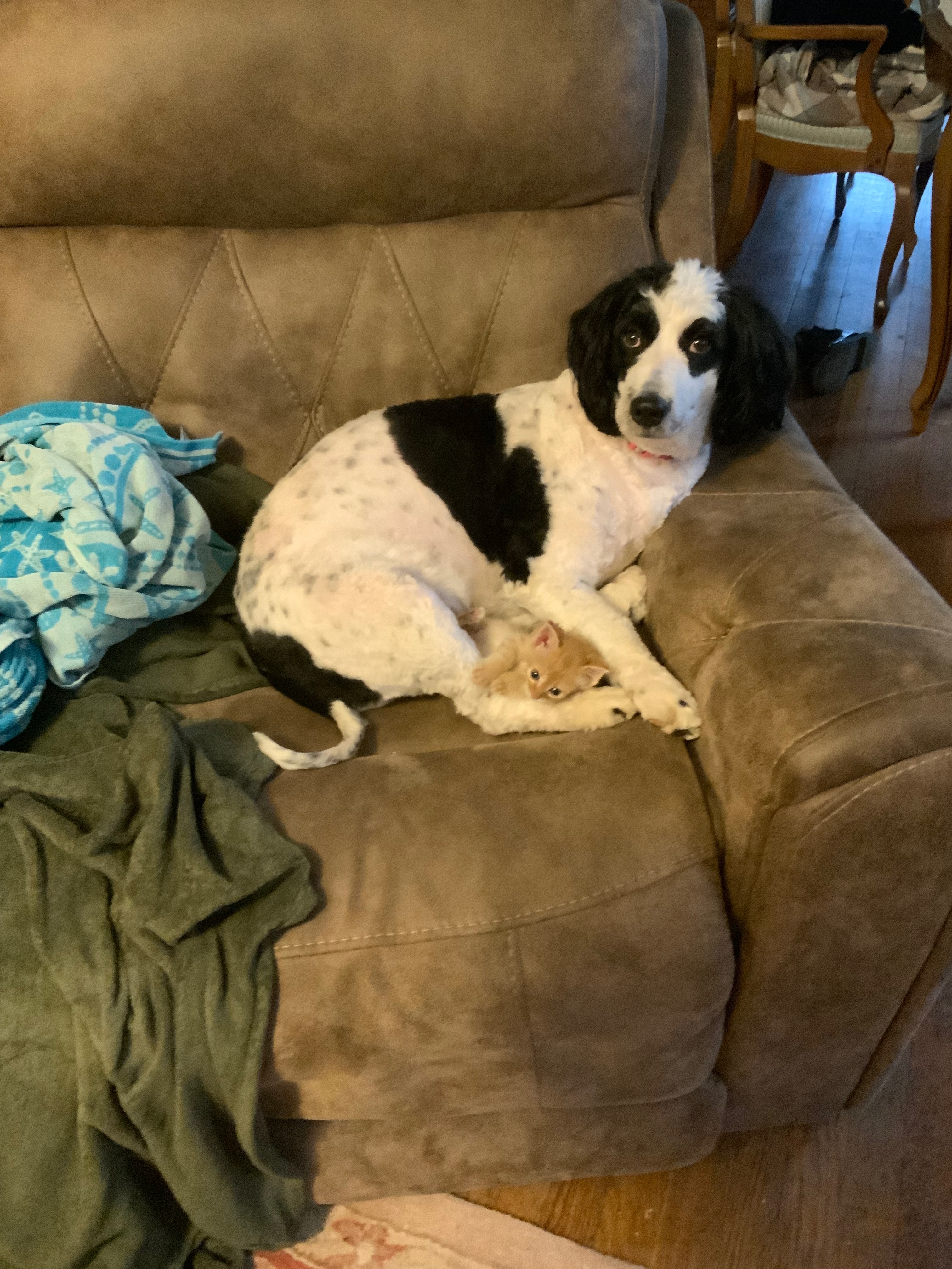 Auggie is only 3, and she has been a magical girl, helping our family foster more than 50 puppies and kittens. She has taught them all how to be great pets and helped them find loving homes.
