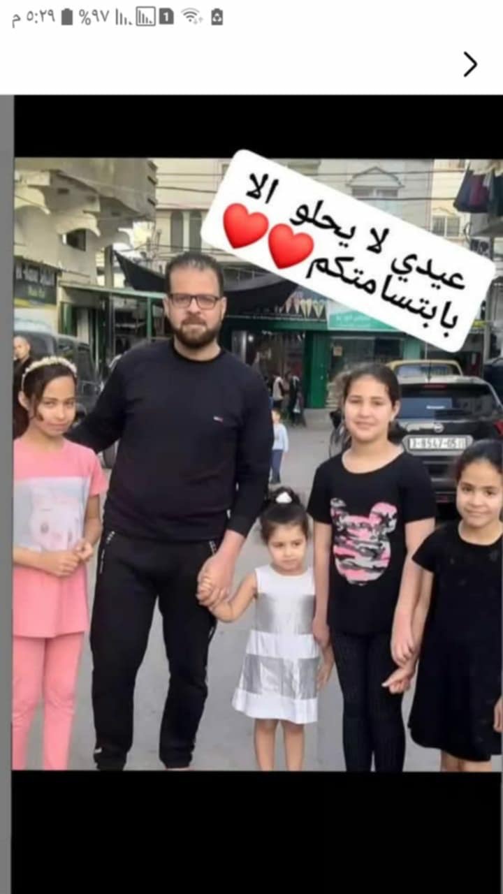 The Family Consists of Father - Ebrahim Jamal Abdelqader Elbohaisi 37, Mother - Alaa, 35, and Five Children - Princesses - Malak, 14, Hayat, 13, Asmaa, 10, Farah, 7, and Baby Noor, 11 Months.