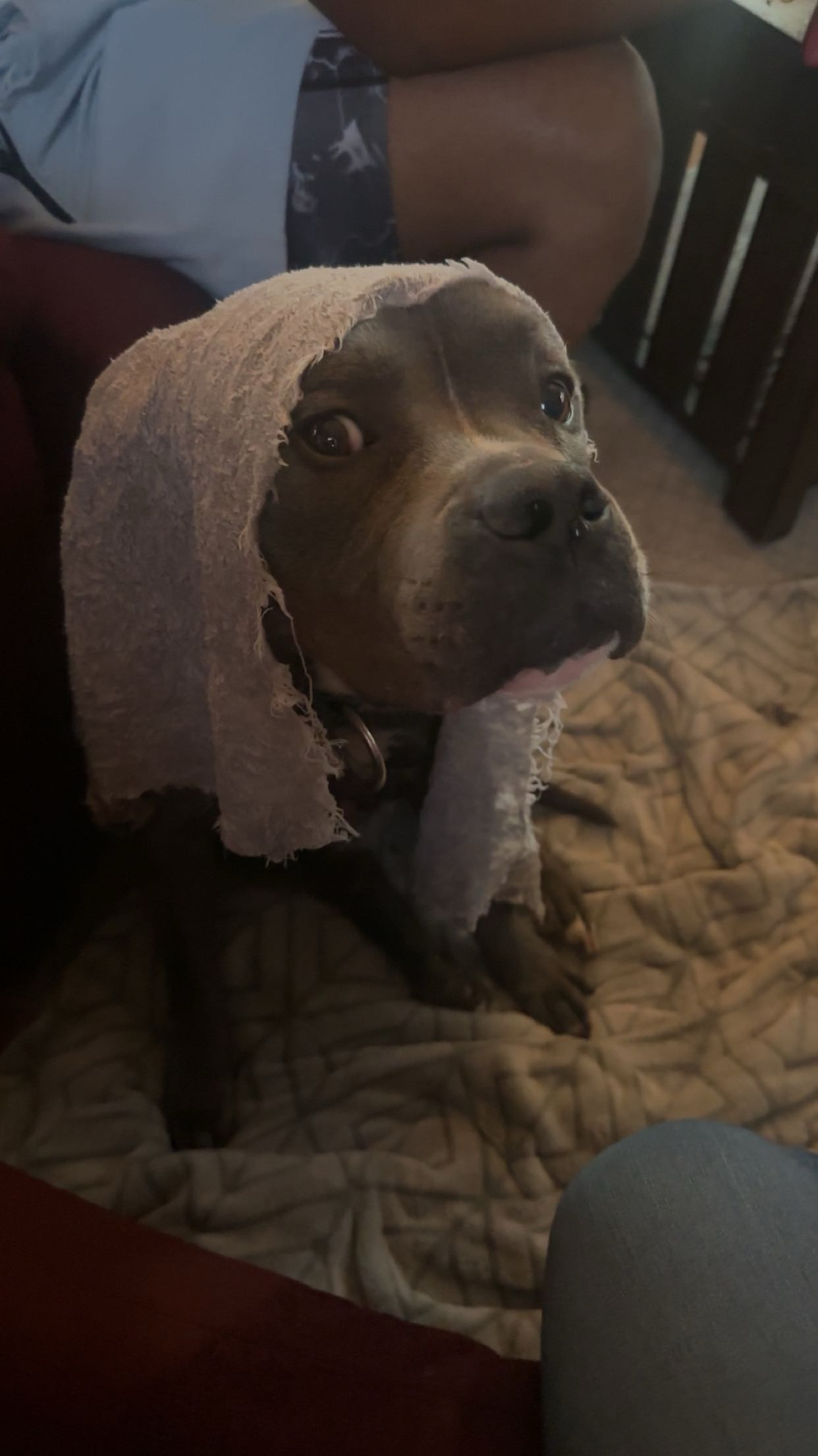 On June 12, 2025, our 4-year-old American Staffordshire Terrier, Blaze, accidentally swallowed a chicken kebob – skewer and all.
