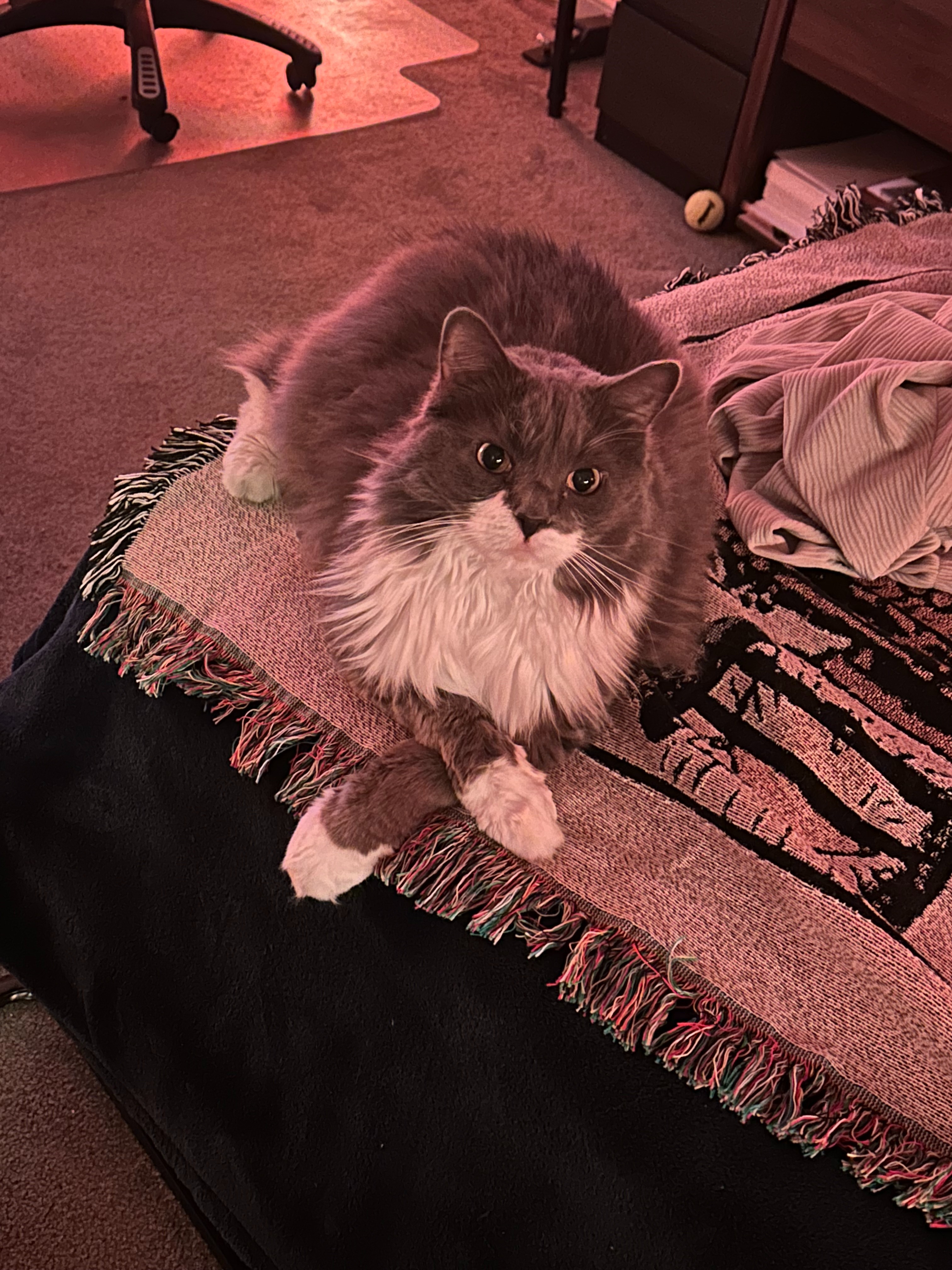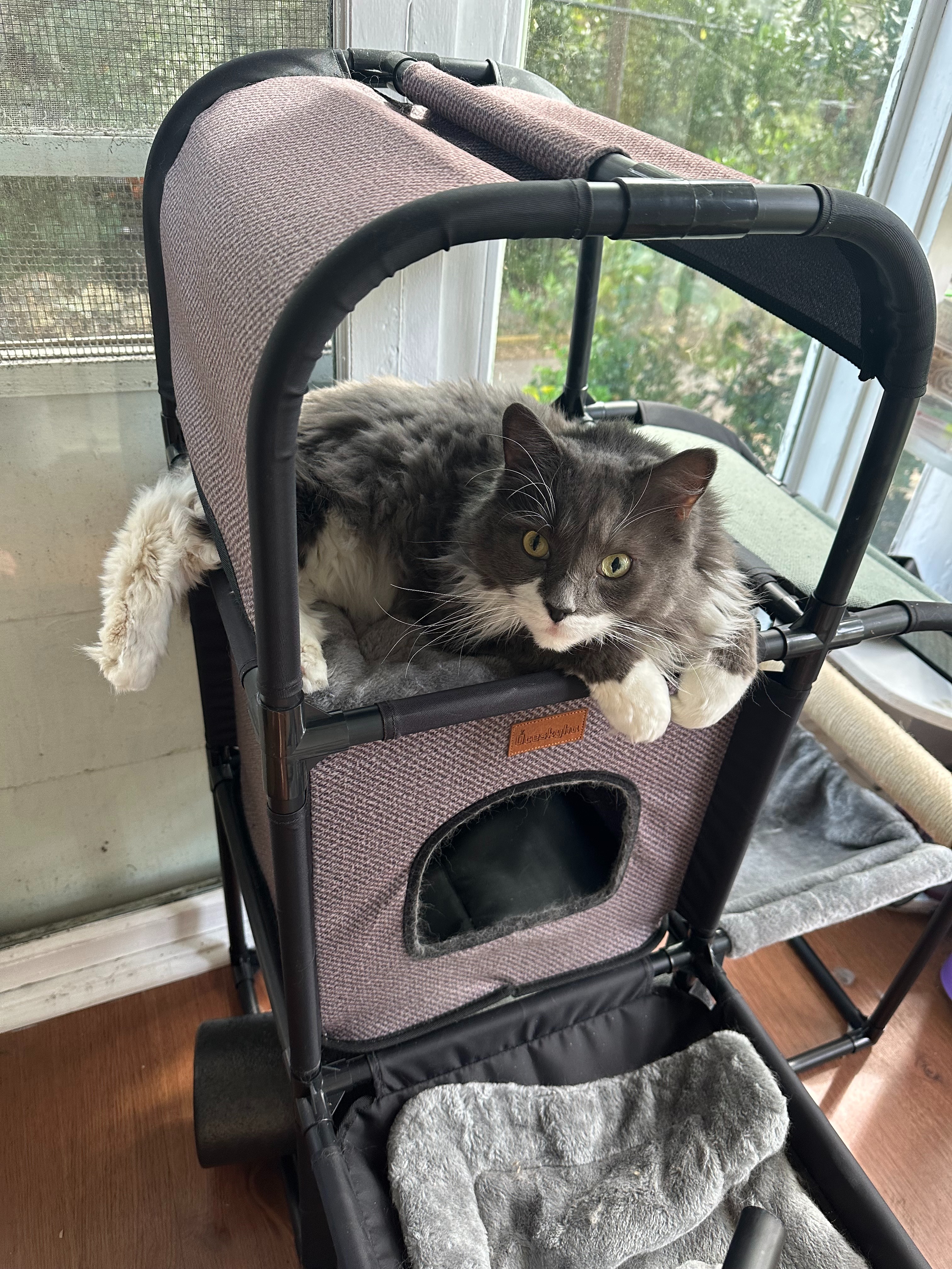 He’s a total chatterbox — often pacing around waiting for me to come home so he can curl up beside me and purr. And yes, he’s an absolute fiend for catnip.