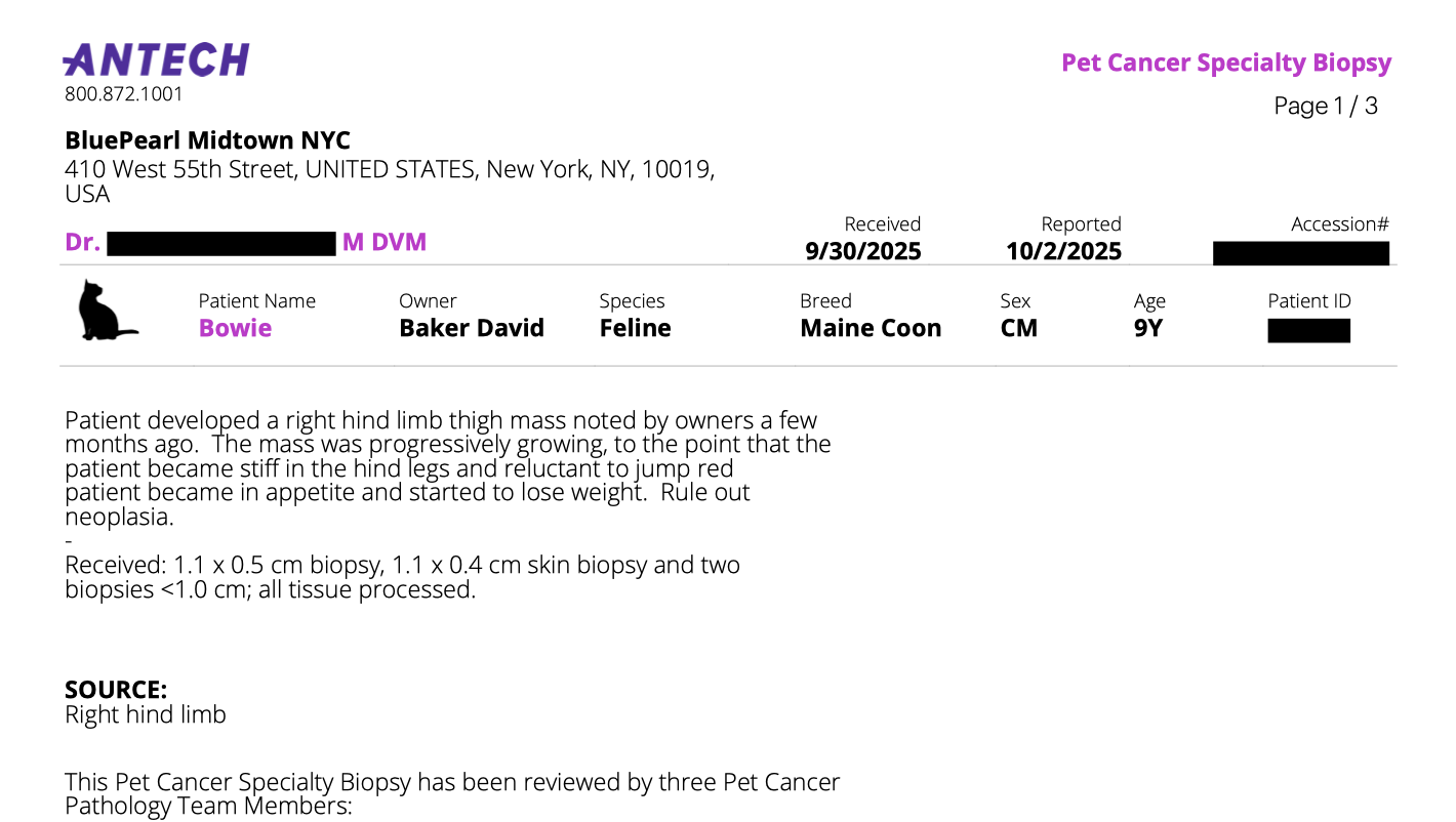 Recently, Bowie was diagnosed with a soft tissue sarcoma — a type of cancer that grows quickly and can spread if not treated right away. The only way to stop it is through a specialist amputation surgery on his thigh.