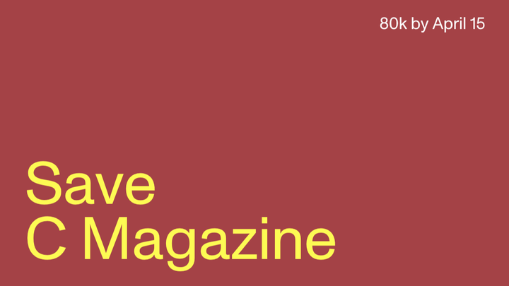 With rising costs, the gaps between public granting cycles, and an overall decline in support for independent publishing, C is at a crossroads. In order to maintain C’s operational integrity, we’re setting a critical fundraising goal of $80,000 by April 15. This is crucial to maintain our baseline staff, contributor, and production needs for the next few months. Otherwise, after supporting thousands of artists, writers, editors, interns, and advertisers over the years, C faces the prospect of imminent closure.