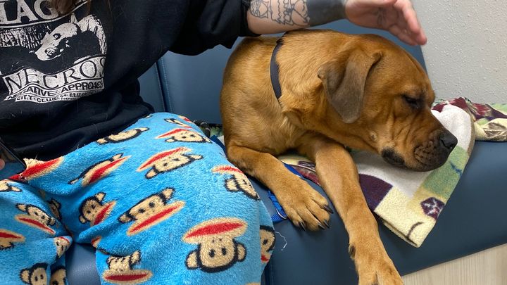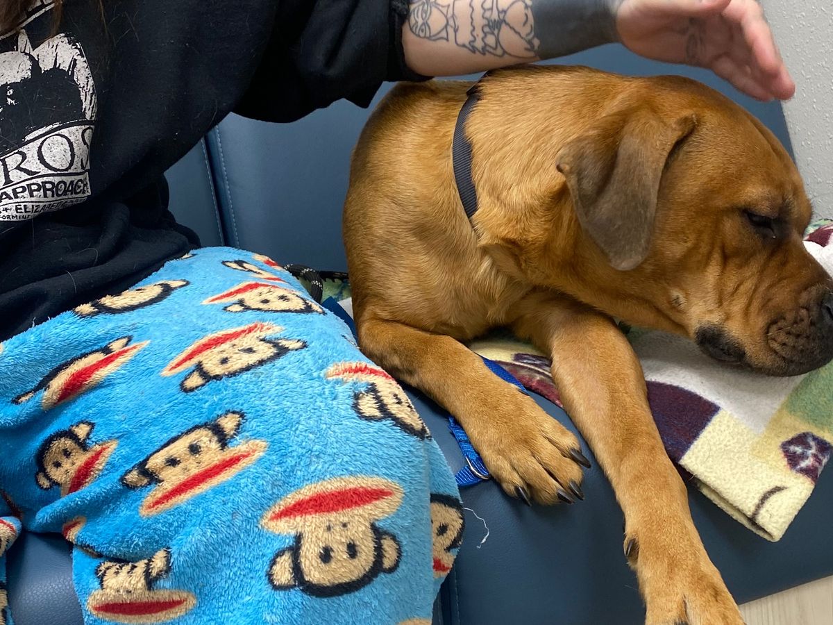UPDATE; Crimson went in for surgery early Sunday morning. After diagnostics we got some really good news that it was Salmon poisoning and not too severe. She stayed the night at the vet to ensure she was stable. She had a very high fever in the middle of the night and had to stay a little longer. She was stable and doing great all day and now CRIMSON IS HOME!! Thank you to everyone that helped out financially, emotionally and with well wishes!! Also the vet was really awesome and said she was a pleasure