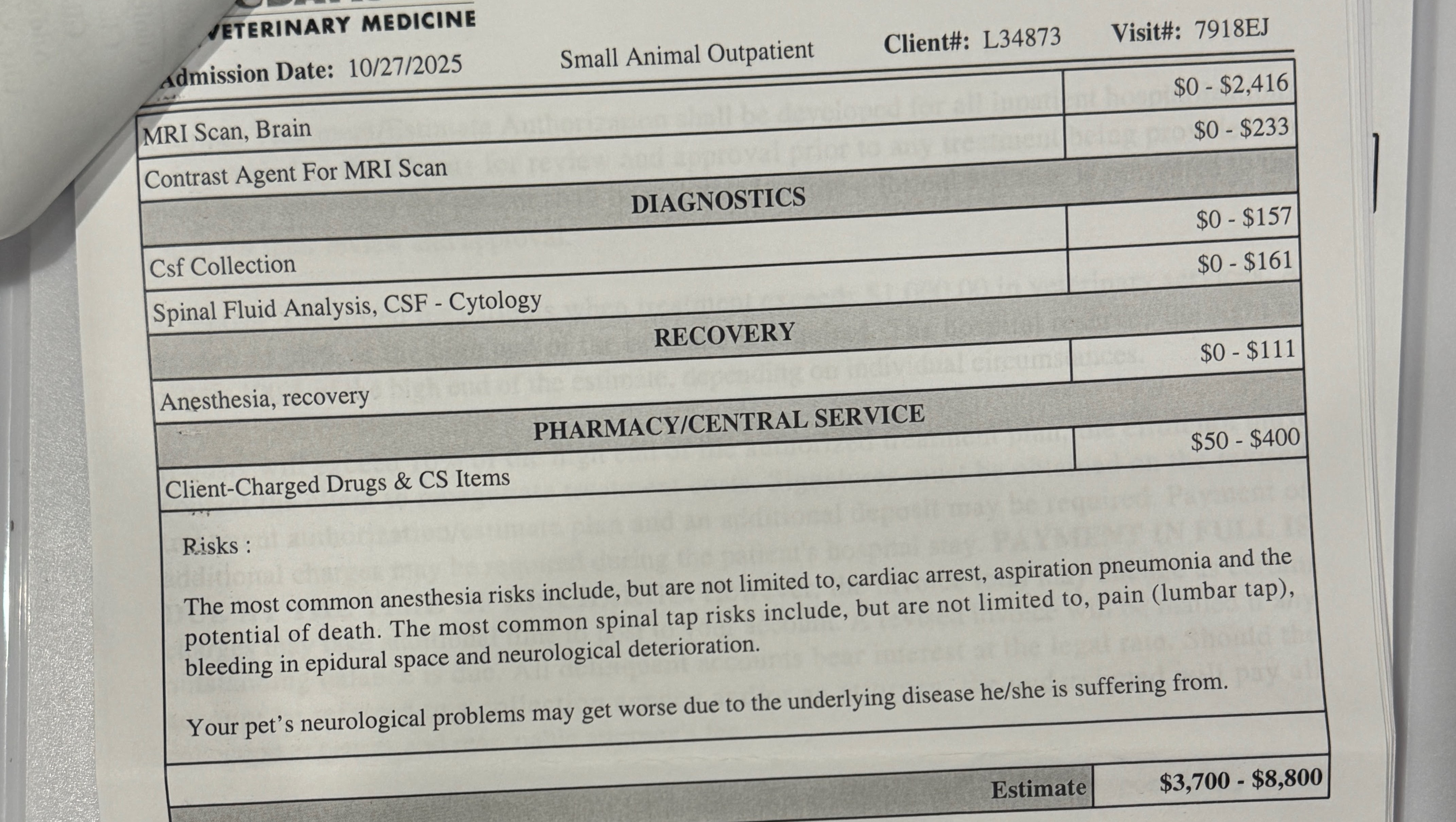 We know the bill will go up higher, especially based off of their suggestion for treatment. But this is the itemized estimate we have now, and only want to ask for what we need.