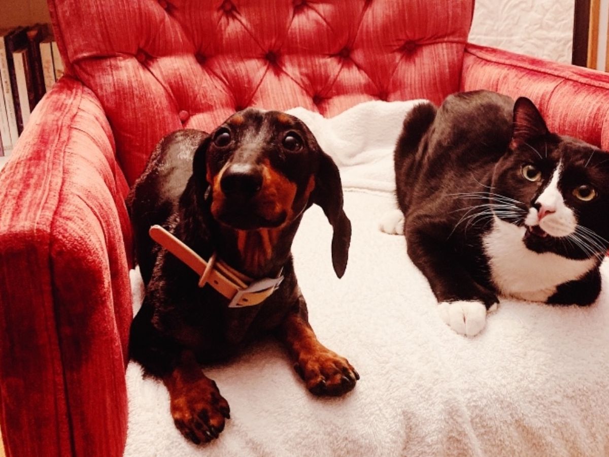 Felix is best friends with my dog, Sprout. (Truly!) After having just spent three weeks together at my family's home in St. Paul, they were inseparable. He's my favorite cat that I've met -- doglike, almost, super attached to his humans, a darling, cuddly, curious sweetheart of a cat. He's an amazing companion, and would sit in my lap every day as I worked from home while visiting. He was born on my cousin's farm in Minnesota, and has a wild sense of adventure. (Obviously.) Pure personality. Vibrant. I've just fallen in love with him, and my entire family has. He is an important member of our family. (And he's a Hemingway cat! He has thumbs.)