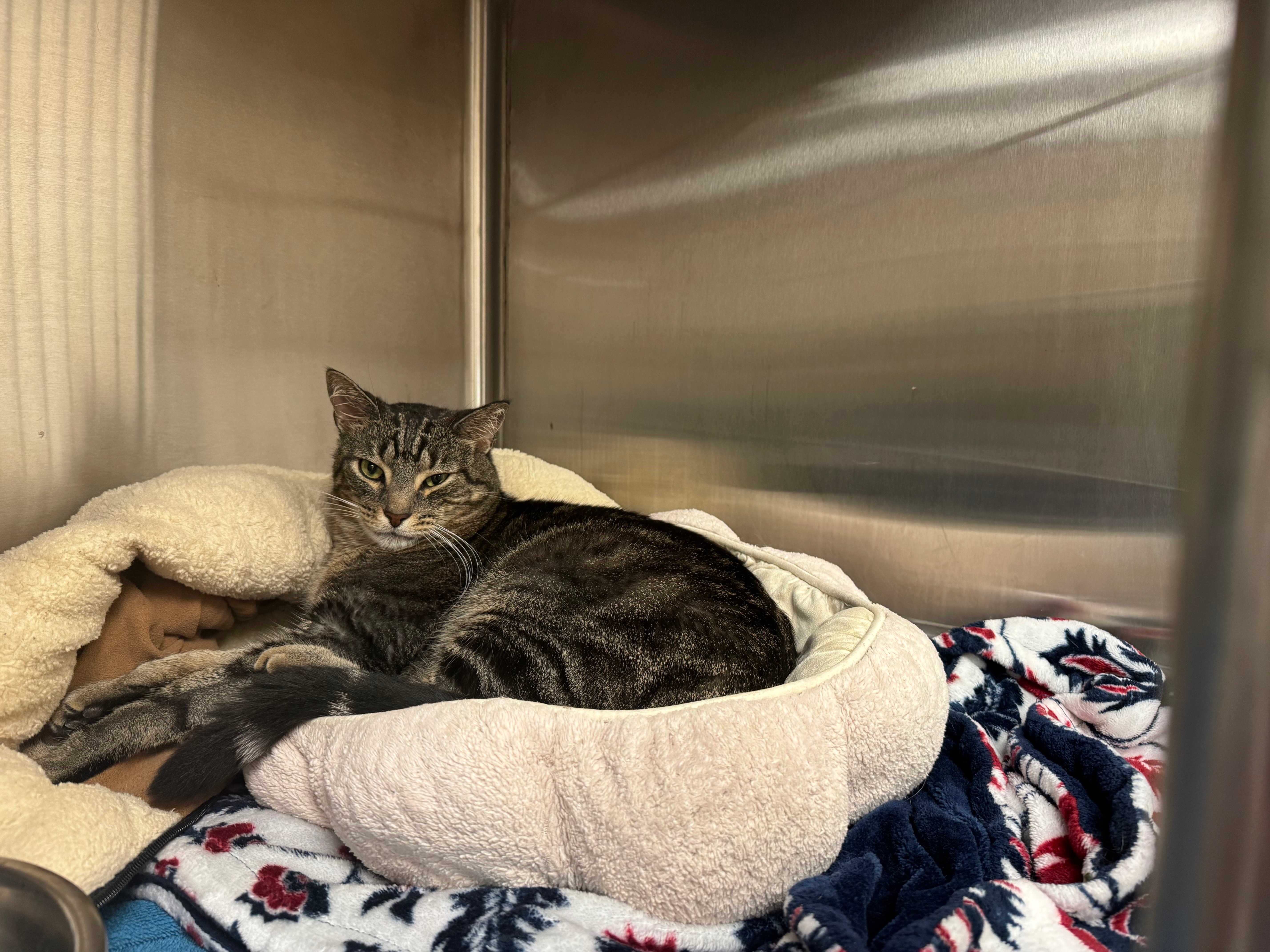 Hi, My name is Angelina and I am Hank’s mom. Hank is my 4yo tabby cat I rescued when he was 6 months old. My boyfriend Zach and I used to bartend at a place called Triple B in hollywood, one night a customer came inside and told us he heard meowing coming from the body shop next door. We went outside and saw him sticking his little paws under the garage door, I lifted the locked garage door as much as I could and Zach pulled Hank out! This was October 11 2021, Hank has been the love of our lives ever since. He is the sweetest cat anyone could ever meet, he truly loves love and will show affection to anyone he meets. Hank stopped eating this Monday the 5th of January and now it is Friday the 9th and he has only been declining. We tried everything we could at my place of employment but I have ended up having to bring him to an emergency clinic (Advanced Veterinary Care Clinic) they recommend hospitalization and a feeding tube among other diagnostics and treatments. AVCC is an amazing place but they are very expensive and I don’t have the funds to afford a multi-day hospitalization that Hank needs. The estimated cost of Hank’s treatment is $6000-$11,000. Any donations at all are greatly appreciated. If you aren’t able to donate please share this.