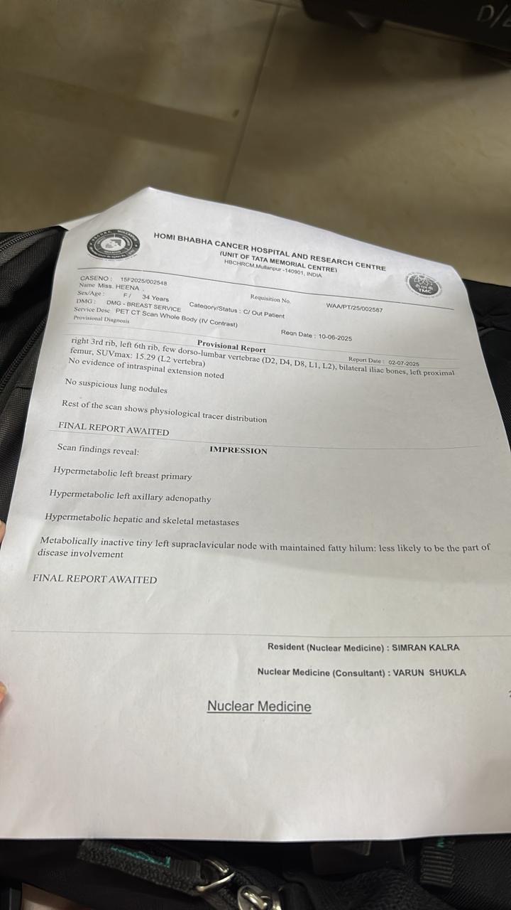Heena and I grew up together. She's always been kind, cheerful, and full of life. Right now, she’s going through the toughest time of her life. Her cancer is serious, and she needs immediate treatment.
