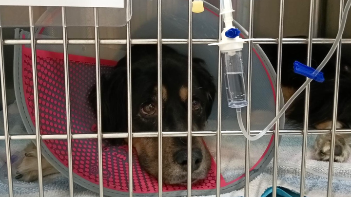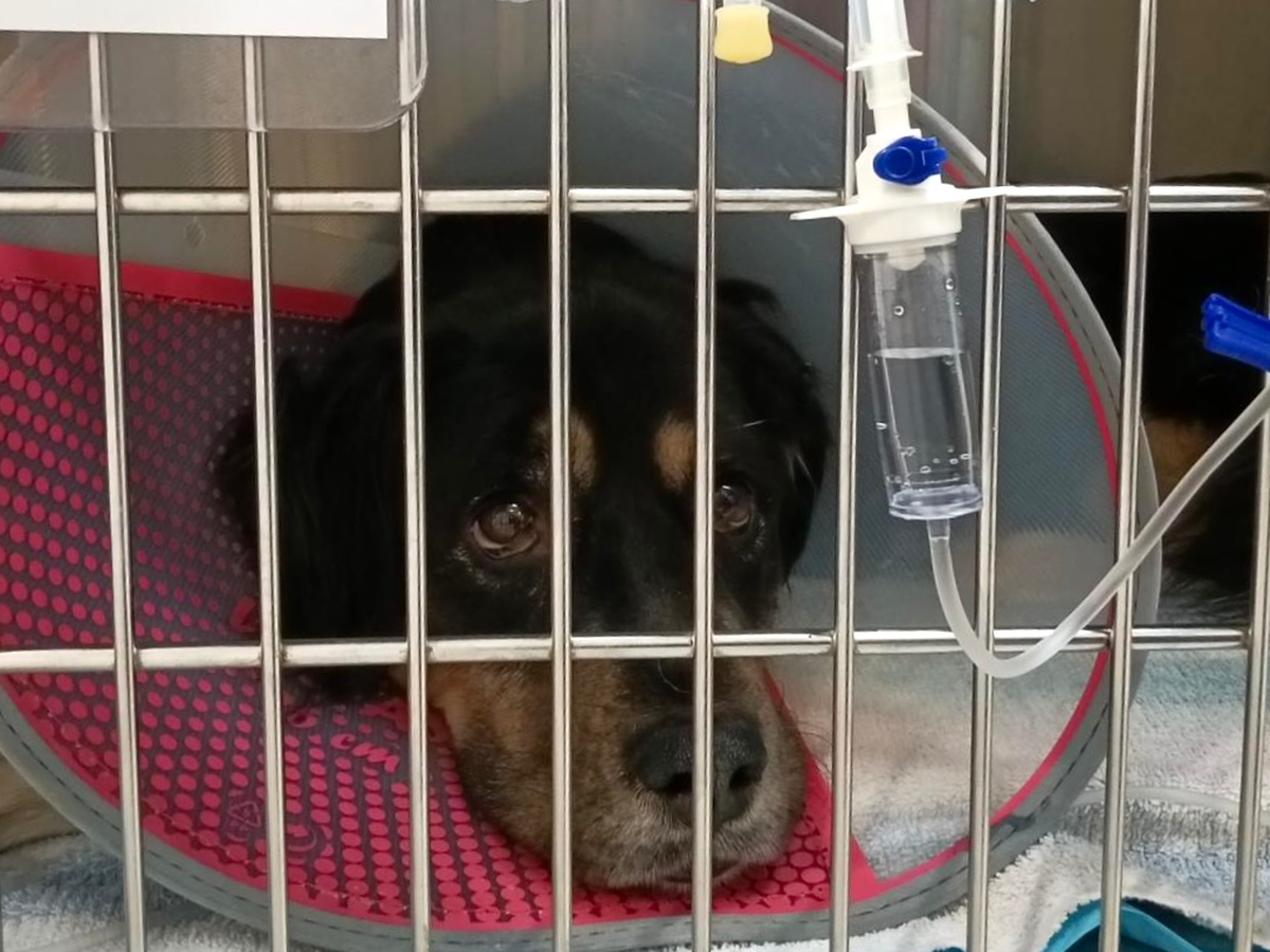 Today, Dakota is receiving round-the-clock care at South Texas Veterinary Surgery. She is receiving food and medications through a nasal tube and IV fluids. This is exactly one month later.