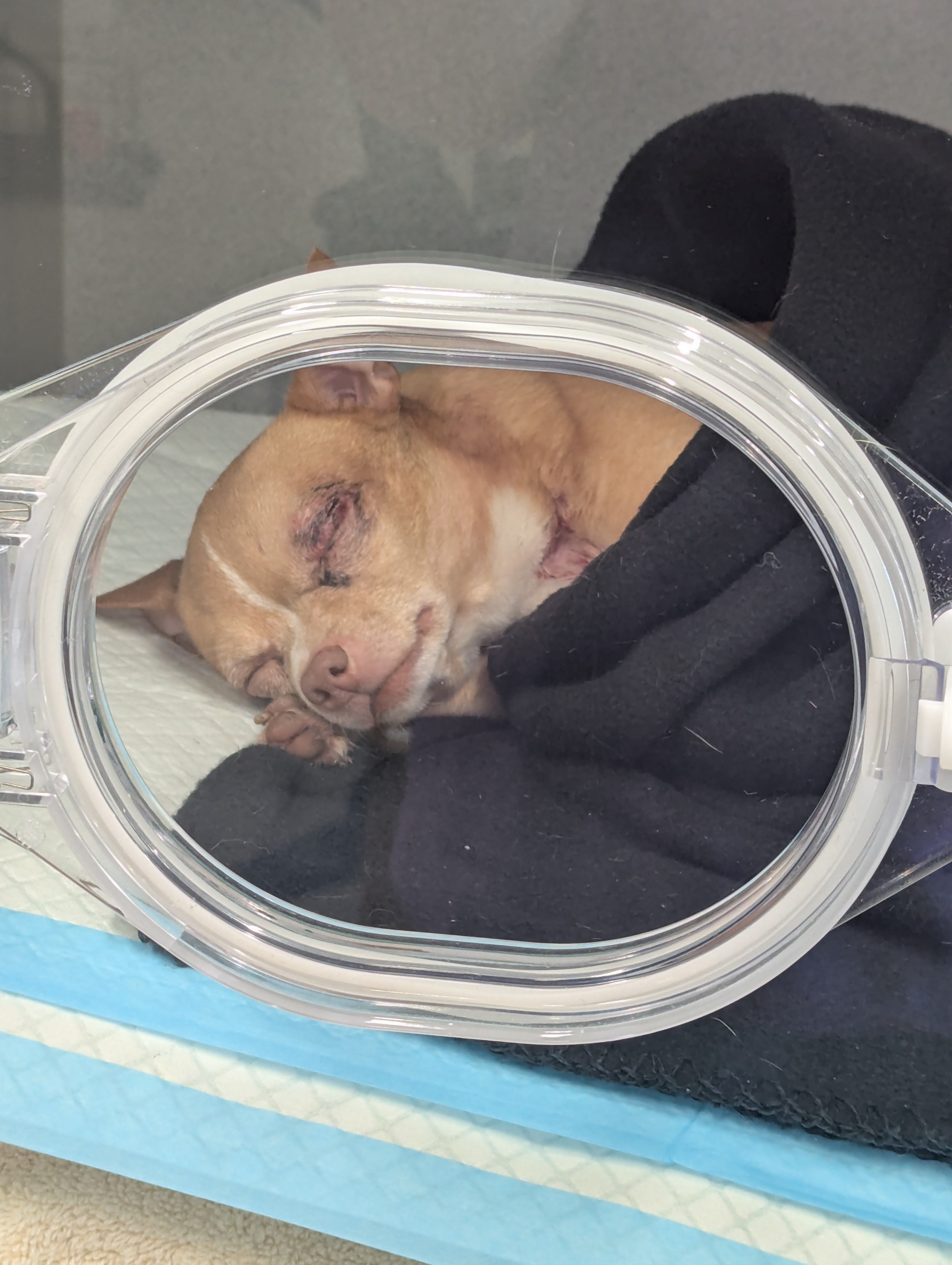 On July 24th, Lynis was severely attacked by another dog, leaving him with significant punctures in his head and chest, fractures in his skull, and swelling in his brain. Veterinary staff at VEG have done an incredible job and are working hard to help him get better and hopefully save his life. However, his owner, Erin, who is already financially struggling, has been left with hefty bills and fees to cover the cost of his treatment.