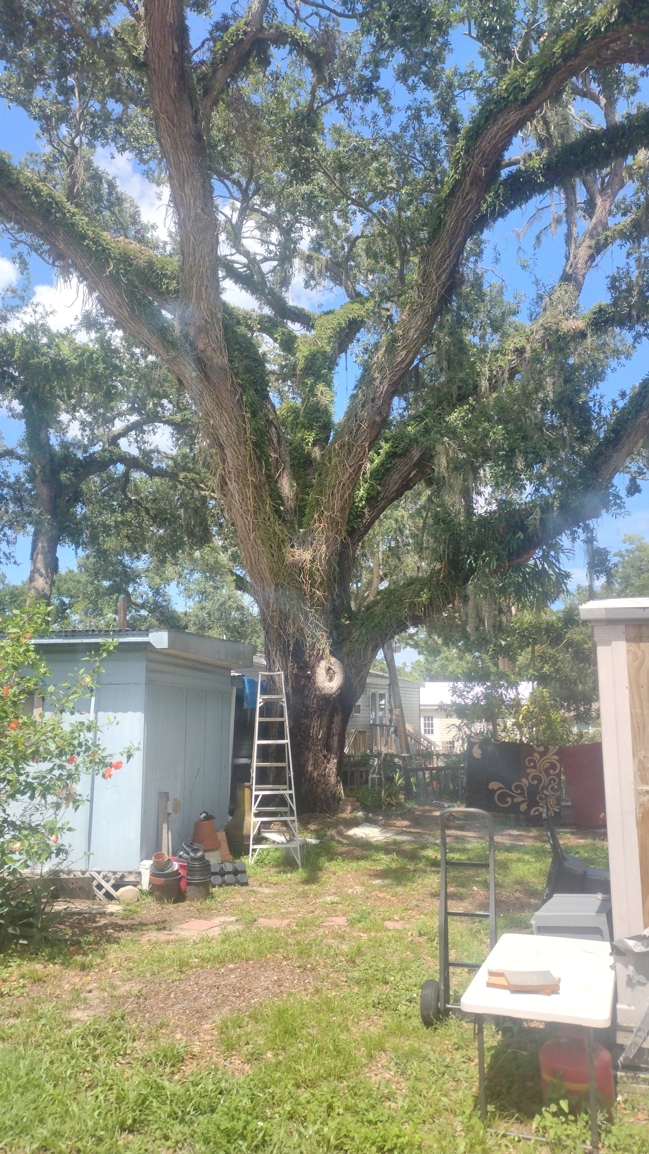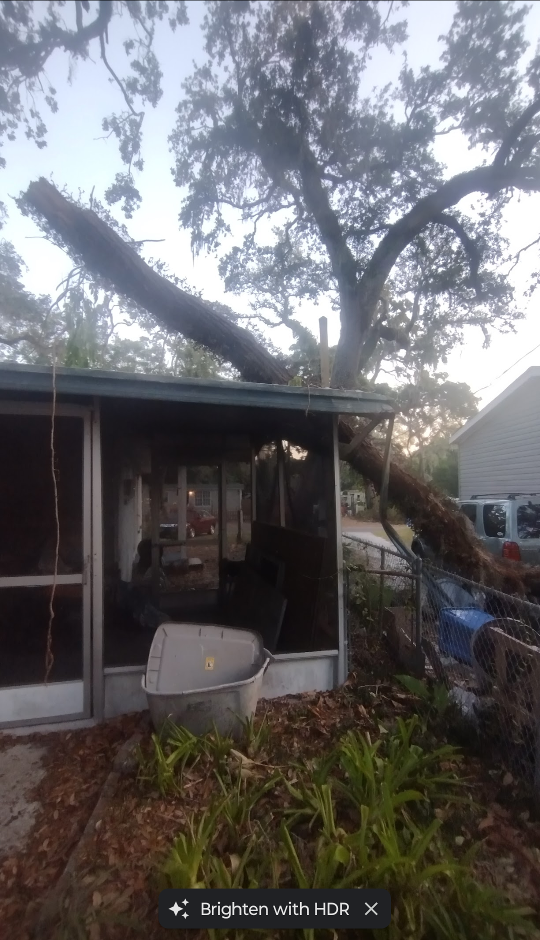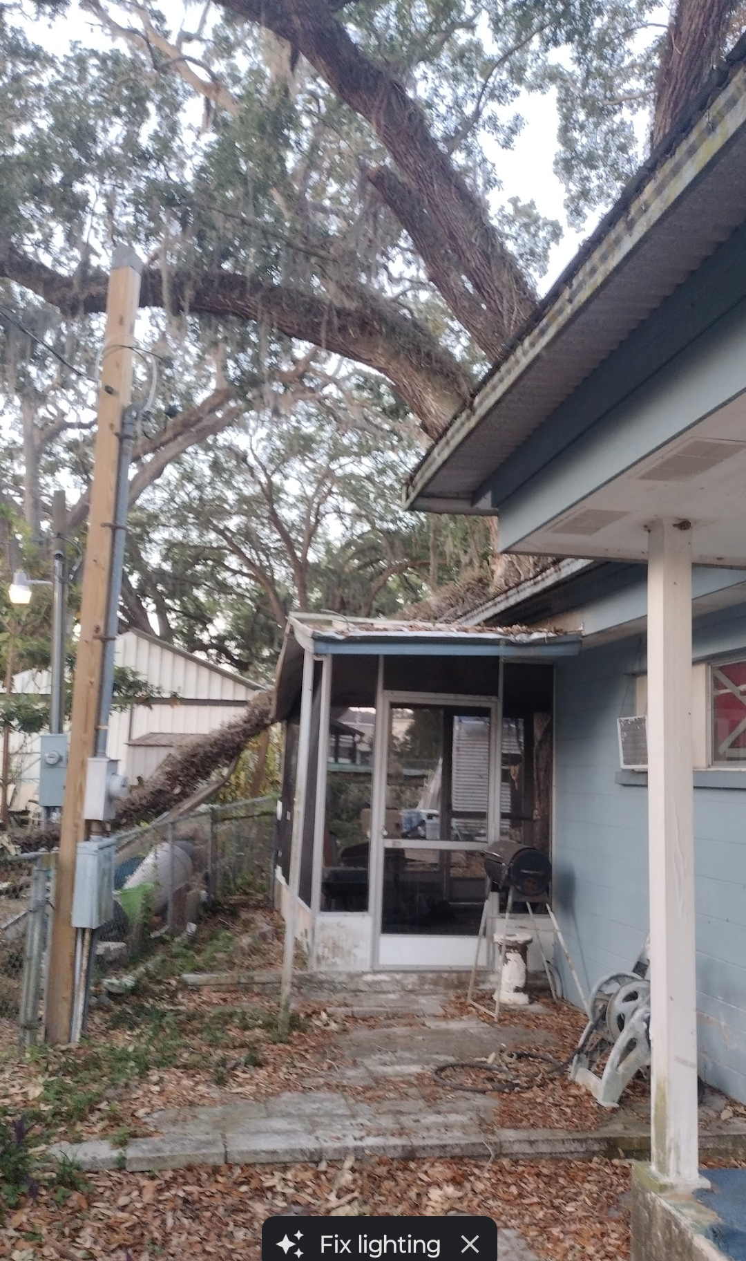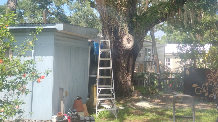 My name is Melissa and I really need help. After Hurricane Milton came through Tampa, I had a lot of damage, but I figured I could handle it using money I had saved and doing the work myself. I've been pretty successful at it, but every time I moved forward, a tree limb falls. The pictures are from the last time, the fifth time, a limb fell. The last time it took out my screen porch and started the neighbor's breaker box on fire. I've had a few arborists tell me the tree is dying and give me free estimates on removing it, the highest being $10,000 and the lowest being $7,000. The tree is now splitting down the middle and will fall directly on my house. If there's even a dollar anyone can give, I would absolutely appreciate it, and I'm a pay-it-forward gal.