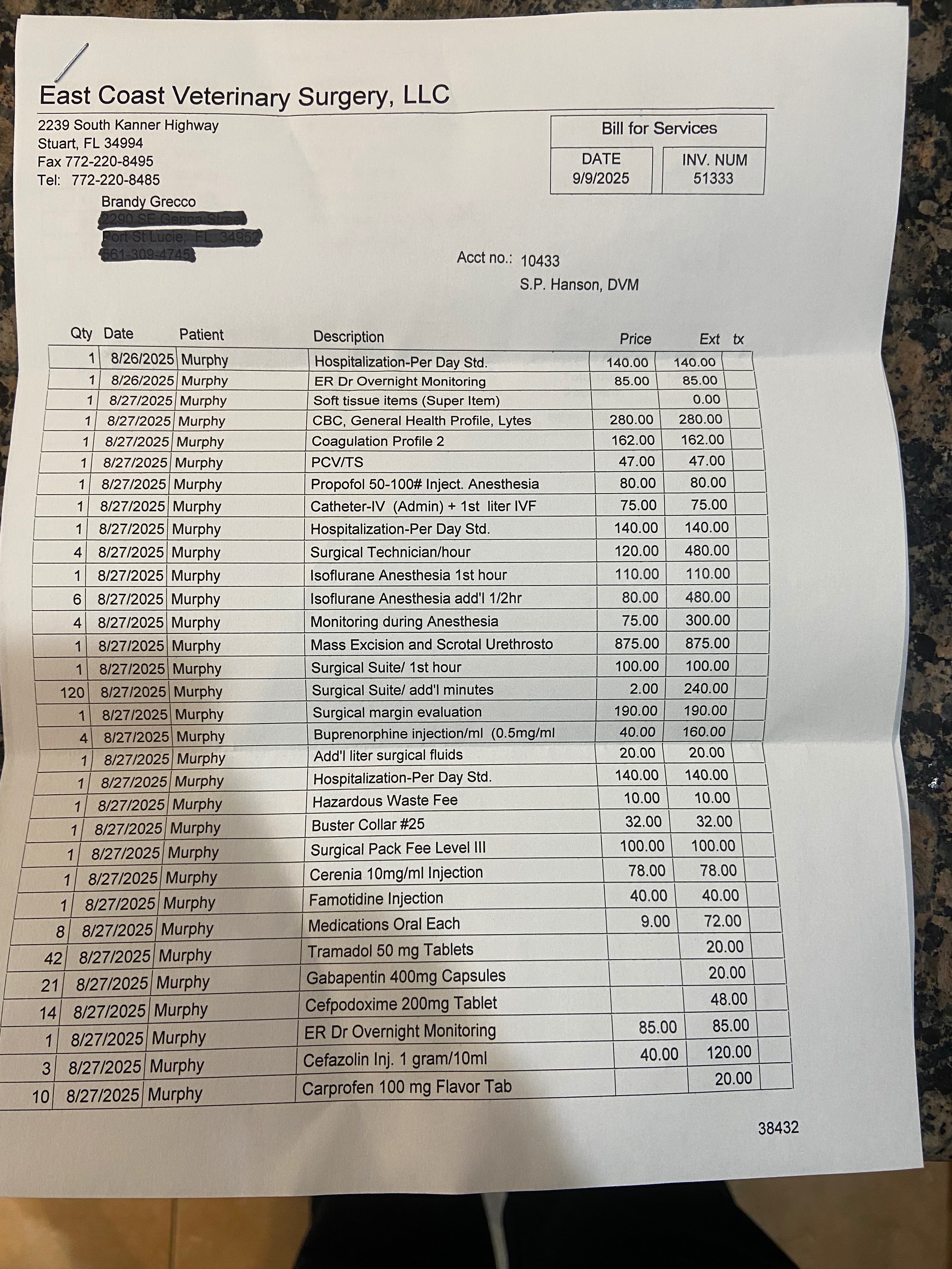 Hi friends and family, as you all know, I'm a huge animal lover. Recently, we got the awful news that my Murphy boy has cancer. It is a slow-growing cancer; small tissue sarcoma. However, due to its placement in the groin/genital area, it is an extremely difficult surgery. Not only is it a difficult surgery to remove the tumor but they also have to amputate his penis. He had his surgery and is recovering, but he got an infection that we are currently treating before the stitches can be removed. Prior to setting up the GoFundMe link, I have already spent $3,000.00 and maxed out the CareCredit for labs, X-rays and biopsies. I paid $4500.00 up front for the surgery, and I used the $2355.00 that was donated through the link to go towards that, along with the $1550.00 that was sent to me directly through private donations. However, I still need $1955 to pay the final bill.