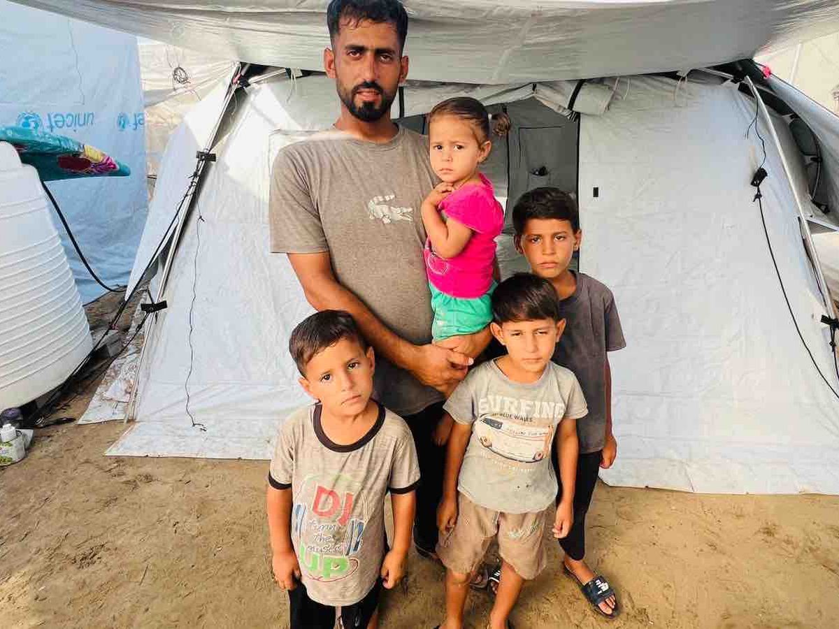 My name is Mohammed Faiz Al-Najjar, a father of six. I have three sons and a baby daughter who was born on the first day of the war – October 7th. Instead of being welcomed into the world with safety and warmth, she was greeted by the sounds of explosions and the smell of gunpowder.