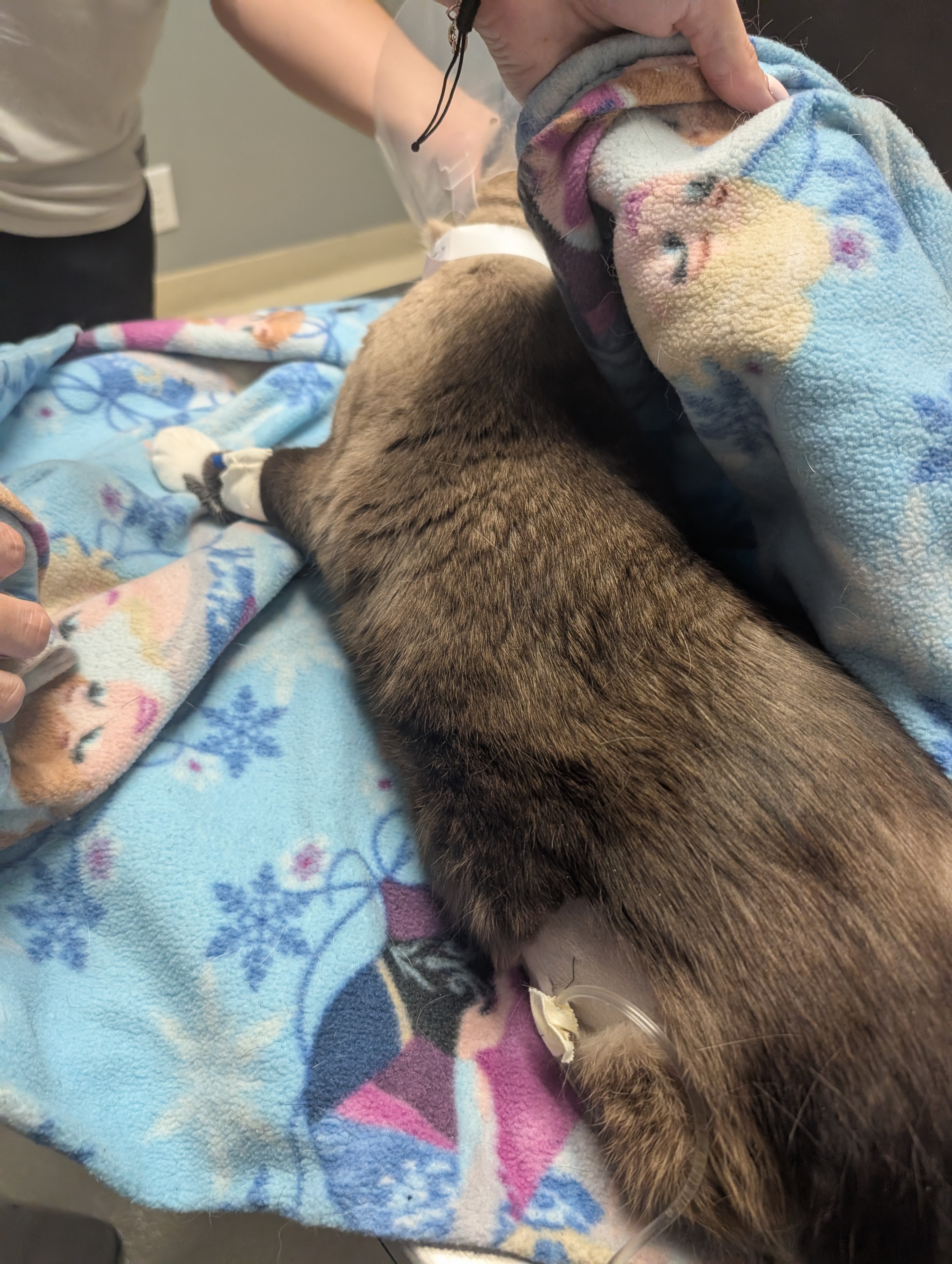 Thanks to quick action, Olaf received emergency care and is currently in the hospital. He's being treated with a catheter, IV fluids, and around-the-clock monitoring to stabilize him and prevent further complications. The vet team is doing everything they can, and he's fighting hard to recover.