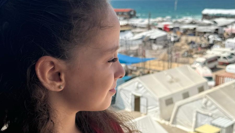 My name is Nisreen, and I am 11 years old. I need your help to save my family. We are living under extremely difficult conditions due to a war that has been ongoing for more than a year and a half. Our home was destroyed, and we have been forced to move from one place to another. Now, we are in the Mawasi area of Khan Yunis, but life here is very dangerous. We have witnessed horrific massacres targeting families living in tents.