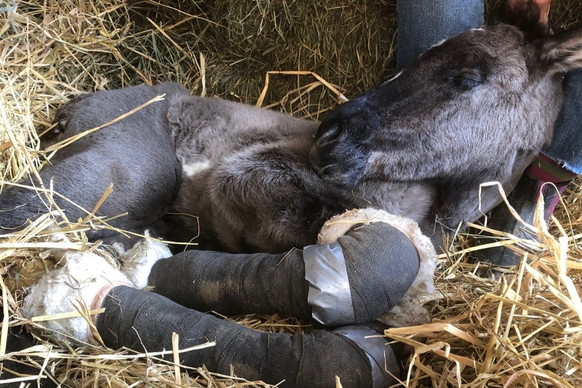 Within the last 10 days through the help of antibiotics, probiotics, and antacid we have her digestion under some control. We radiographed all of her limbs from every angle to learn what her actual problems were. We discovered severe contracted tendons, severe angular deformity, and severely windswept hind legs. We added physical therapy twice a day every day including joint manipulation and hand-walking. There's a laundry list of veterinarians, farriers, colleagues, friends, and even a human PT who have assisted with Echo's ongoing recovery. All of this cost thousands of dollars.