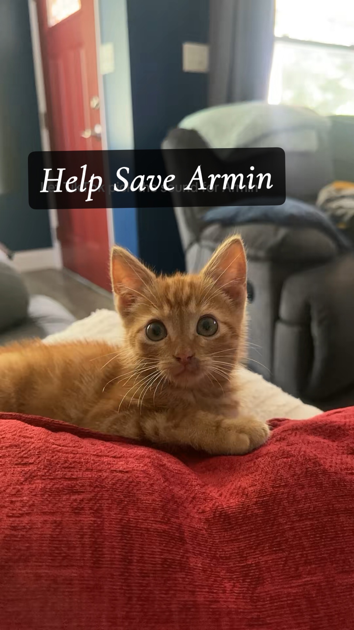 Original: Hi, my name is Lindsay and I’m fundraising to help cover life-saving medical bills for our 1-month-old kitten, Armin.