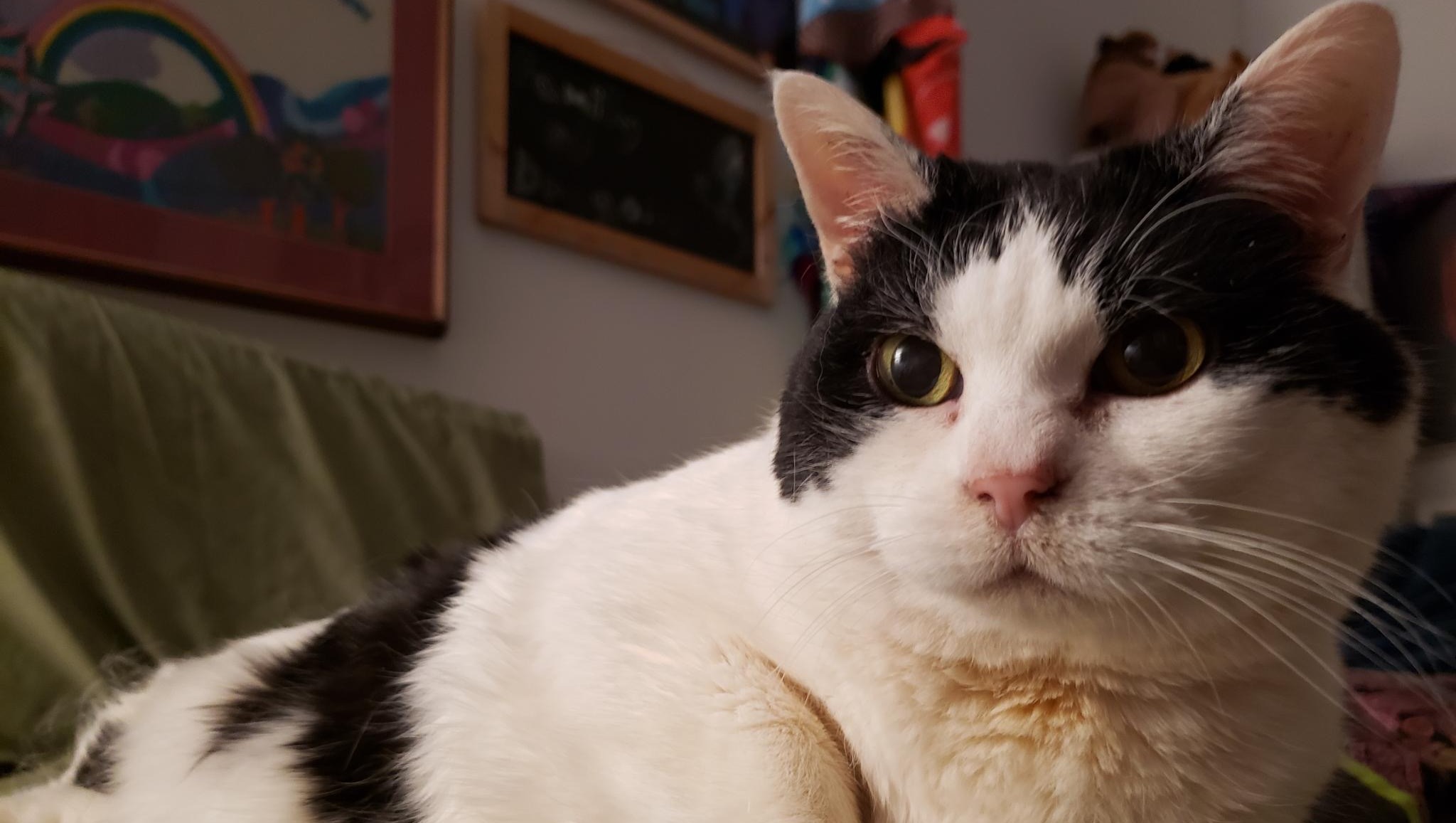 Booty is still very much enjoying her life! She's active, playful, eating well, loves to cuddle, jump and tumble, watch the world outside her window, and play with her toys. Aletheia has been chronically ill for the past three years which has left them mostly bedbound, and Booty has been their constant companion -- always attentive, and even alerting others when Aletheia had a fever or something else was wrong. She's always been very gentle, thoughtful, and smart, and we would really love to give her what comfort and wellness we can in return for as long as we're able.