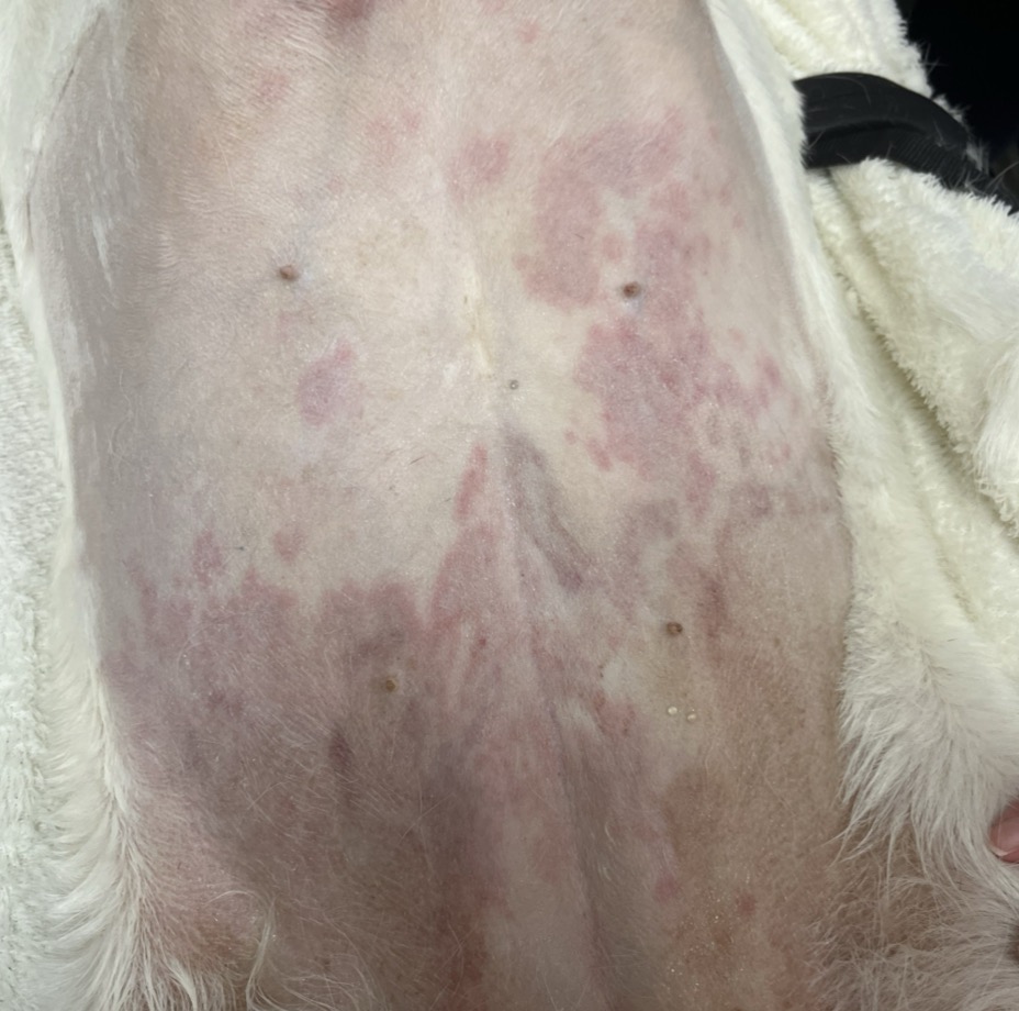 Potato is the oldest sibling to Goober, Mr. Pickles, Mayhem and Egbert, and all of us are distressed without our family “therapy dog” around and healthy. We hope with the right care, recovery will be a while but at least possible. Thank you.