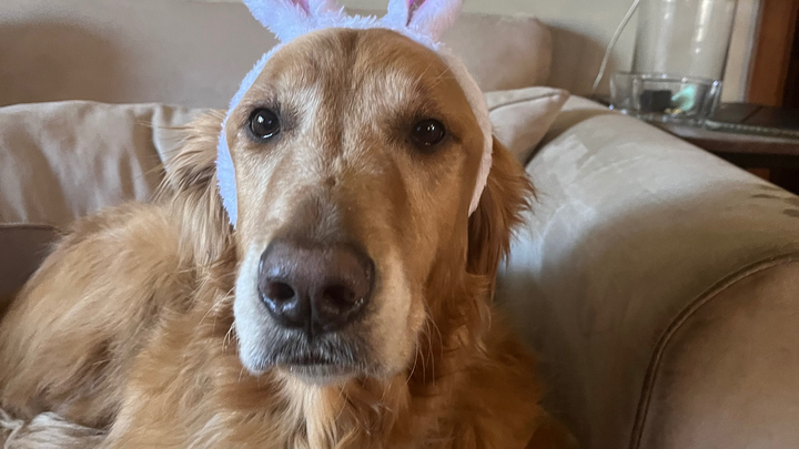 We rescued Rufus in December 2022 from an elderly man named Lou who was entering hospice. What started as a temporary placement, became permanent when Lou passed away within a month. Rufus quickly became a cherished member of our family: he’s sweet, goofy, and full of personality. He really is loved by everyone who meets him.