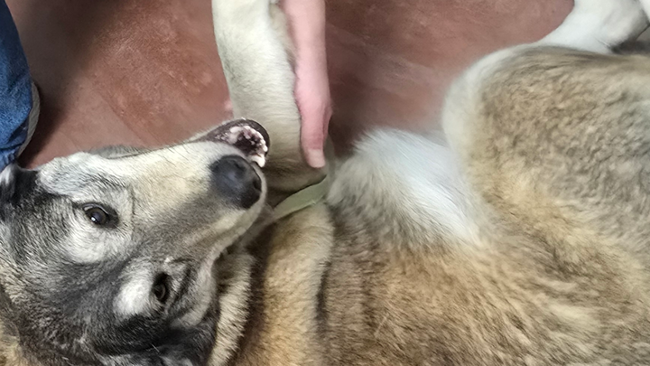 Being a bigger dog, it puts a lot of stress on the other leg since she can't use her right one. We are working on her losing weight, which is also hard because she shouldn't move much with this tear. Trying to get her to not play with our other dogs is so hard; she is so excited, and we are jumping around trying to get her to stop.