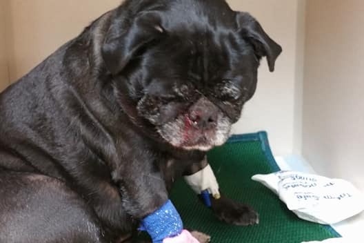 Within a few hours, APARN learned about him, and stepped in to assume financial responsibility to help this little pug! The vet is running blood work and will be adding some additional tests such as x-rays and ultrasound, to verify the extent of his internal damages.