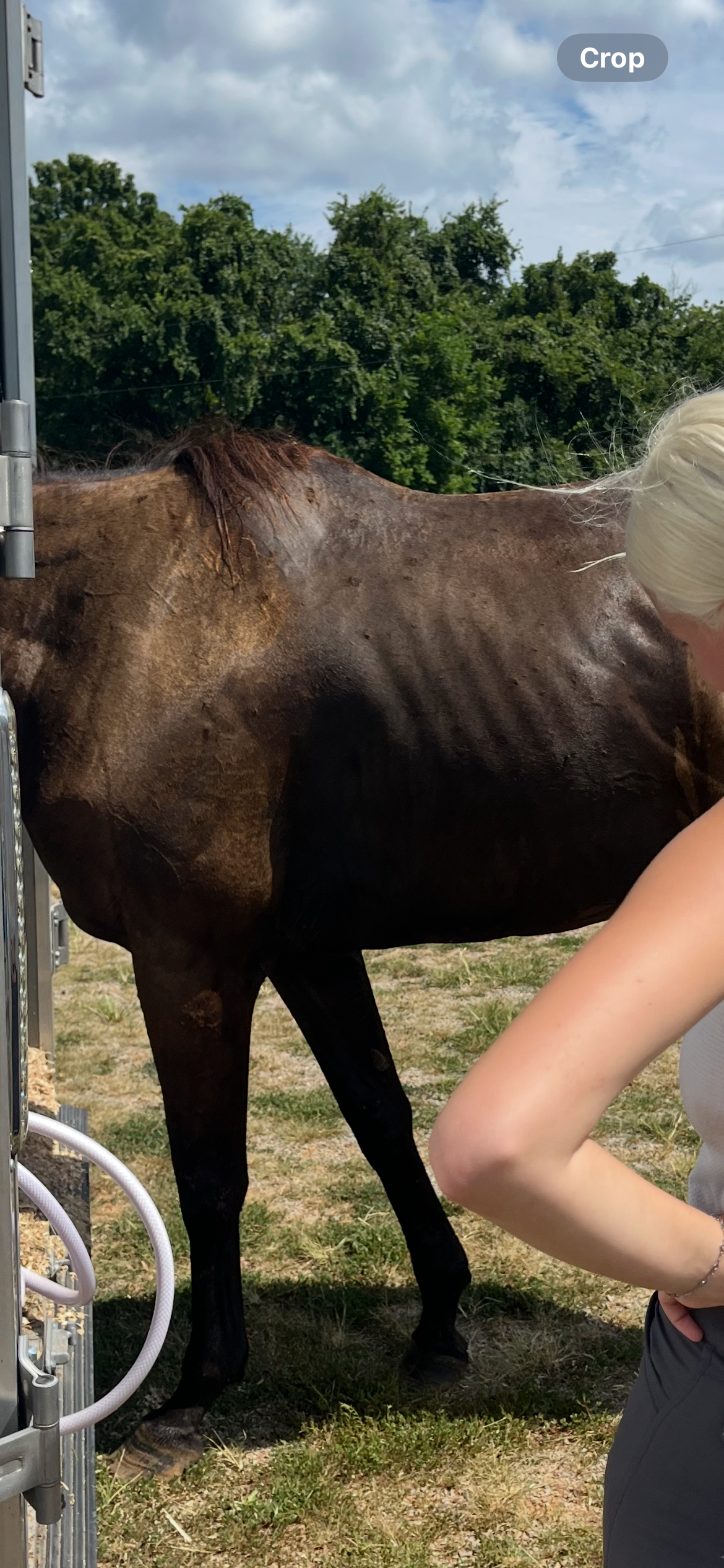 My daughter posted a photo with her new horse and was contacted by a trainer who had originally owned her in Ohio. She was absolutely horrified at her condition and immediately started to reach out for answers and fill in the missing pieces. She made a post on social media and people started sharing stories about the previous owner and the neglect this poor horse has endured.