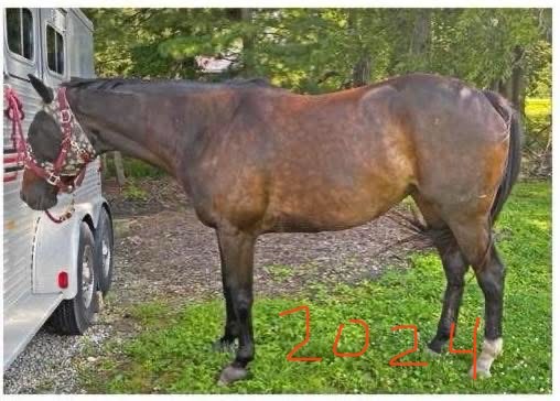 This is Sammy. We purchased her on Tuesday, July 29, 2025 in Kentucky. Sammy’s ad described an 8 year old show horse who had been out of work for several months. (See last picture) Photos and videos of Sammy jumping in the local Hunter/Jumper circuit highlighted her ad.
