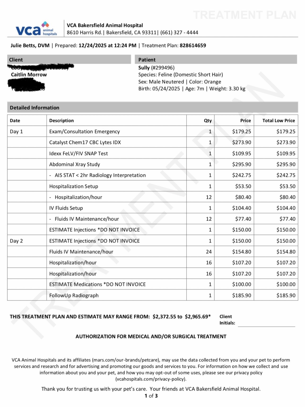 We have to pay the bill tomorrow, and I’m not sure how we are going to. We don’t have enough to cover it, not even close. The only other option is to pull him out now and not have him continue with fluids or further testing.