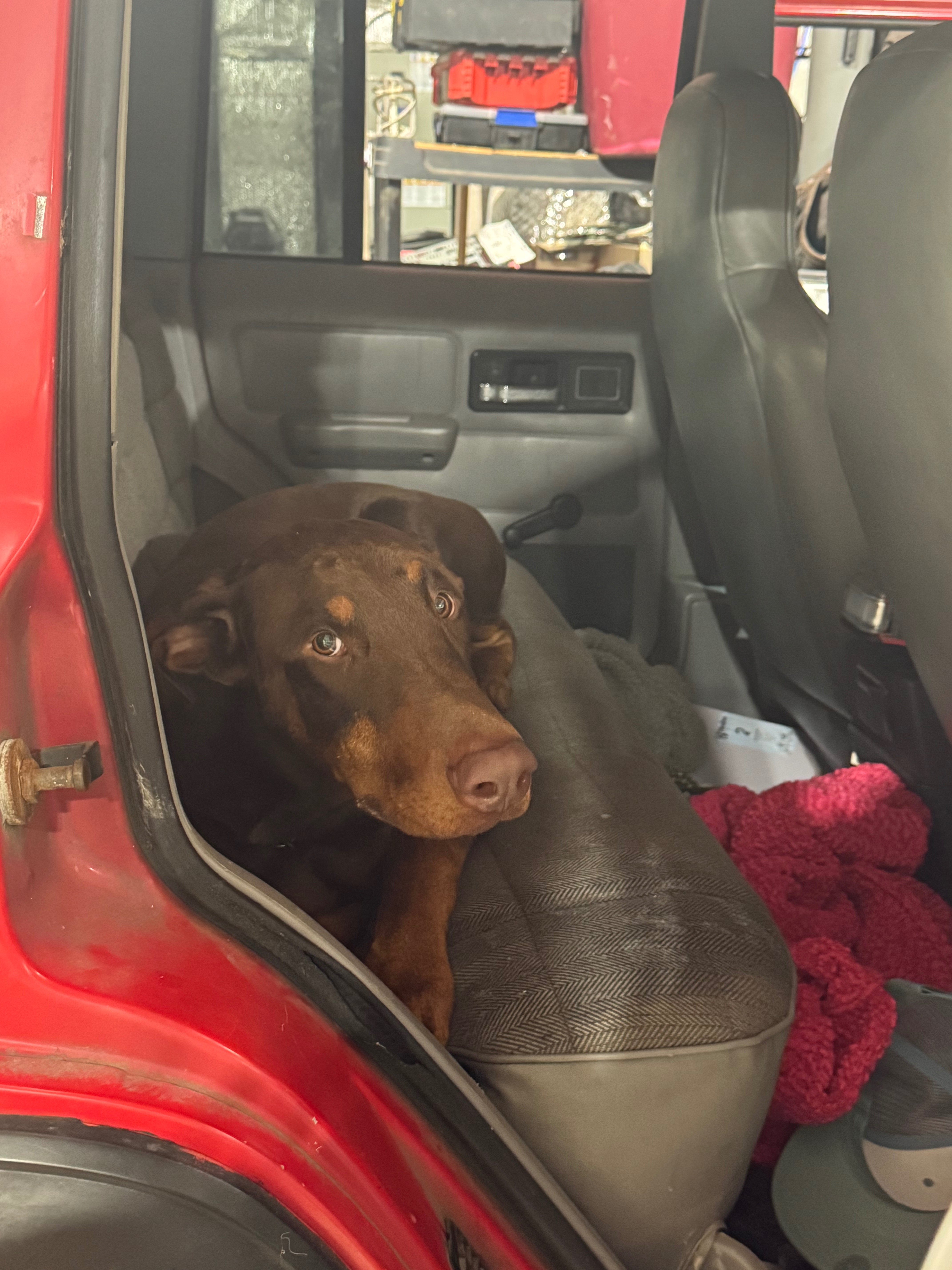 My name is Allie and my best friend in the whole entire world is Tank. He is my second Doberman. I fell in love with the breed after my partner, Kyle Powell, and I adopted a senior Doberman named Naiki. She passed away from dilated cardiomyopathy after the best 83 days together, in her sleep, on December 7. We adopted Tank on December 11. I saw a Craigslist ad saying they needed to rehome him, and I sent an email saying I would leave work right away and pick him up!